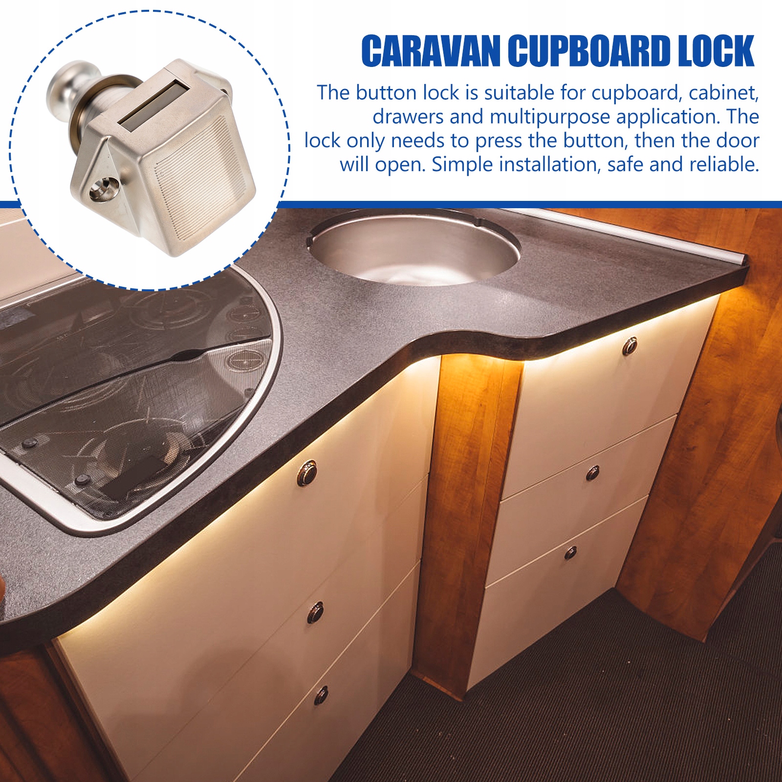 ✅ Кнопковий замок підходить для шаф, буфетів, шухляд і багатоцільового застосування.