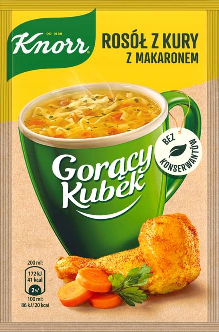 Витоки бренду Knorr сягають 19 століття. У той час Карл Генріх Кноррпрацював над створенням способу сушіння овочів і спецій, які повинні були стати основою для порошкових супів. Перший концентрат покинув фабрику в 1889 році і швидко завоював серця європейських домогосподарок. У Польщі продукція бренду з'явилася через кілька десятків років - в 1932 році, але тільки в 1990-х роках вона стала дуже популярною в нашій країні. Нічого незвичайного! Knorr зосереджується на смаку, часто виграючи нагороди в конкурсі «Продукт року».