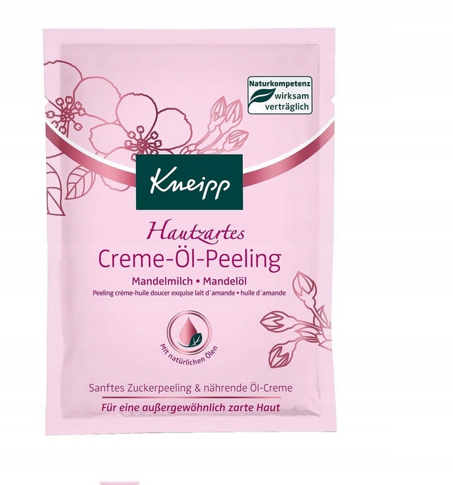 Кнеп, ніжний кремовий лущення тіла (упаковка: 40 мл) безпечно видаляє мертву шкіру, згладжуючи шкіру тіла. Поєднання мигдального молока та мигдальної олії з живильними властивостями проникає глибоко в шкіру тіла, заспокоюючи його і надаючи йому м'якість і твердість.