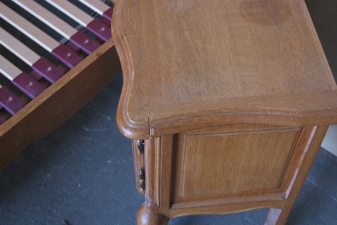 Стан меблів видно на фото, конструкція стійка. Знебарвлення на шафі, поріз на стільниці.