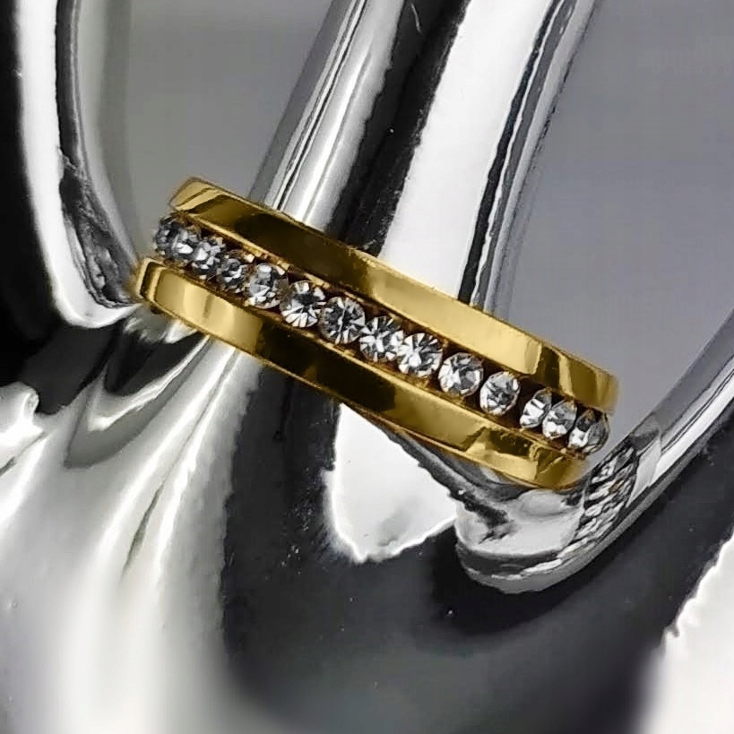 KO3 ЗОЛОТА ОБРУЧКА ЦИРКОНІ 316L СТАЛЬ 1 ШТ.