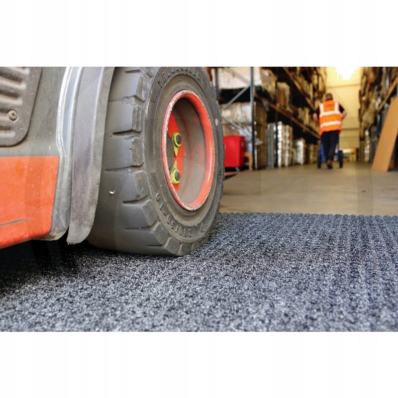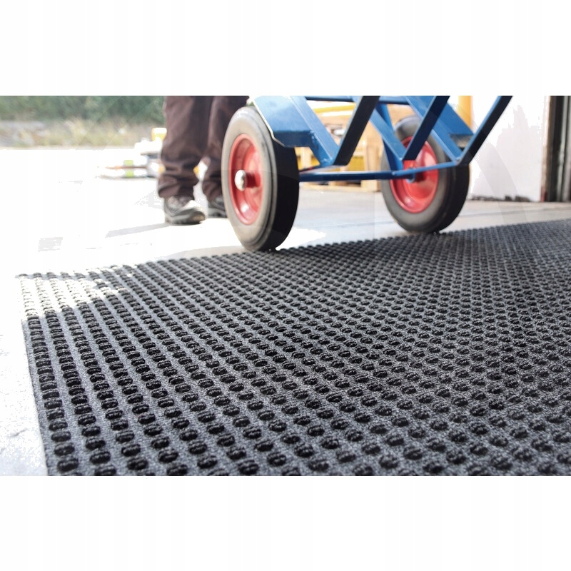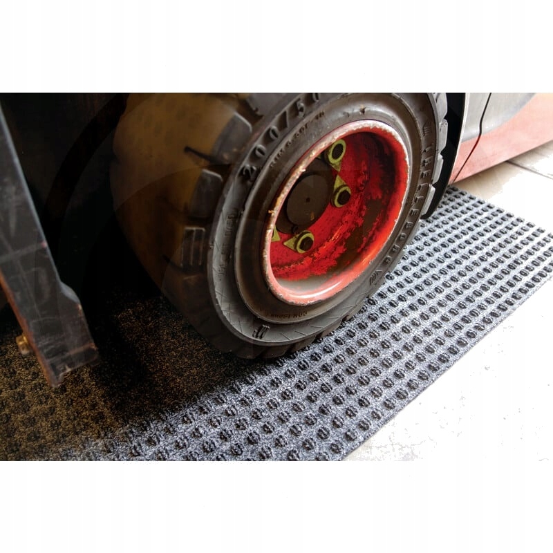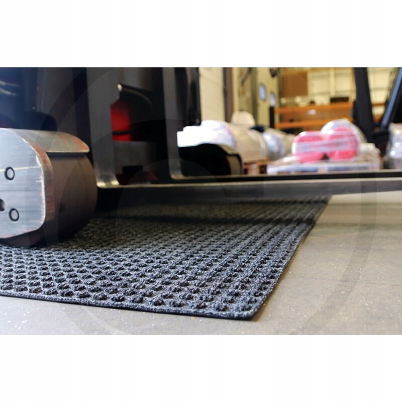 вафельна візерунка поглинає вологу і видаляє бруд із колес навантажувачів. - зменшує ризик ковзання через проникнення води. - зменшує ризик ковзати навантажувачі або втрати контролю над ними на забруднених поверхнях підлоги. - допомагає зменшити витрати на прибирання в негоду. - Легка збірка за допомогою подвійної клейкої стрічки. - Великі килимки можна закласти індивідуально або поруч один з одним, щоб покрити більші поверхні. Луб, закладений поруч один з одним, щоб покрити більші поверхні. - Матеріал: ПП кришку з гумовим армуванням - Товщина матеріалу: 10 мм