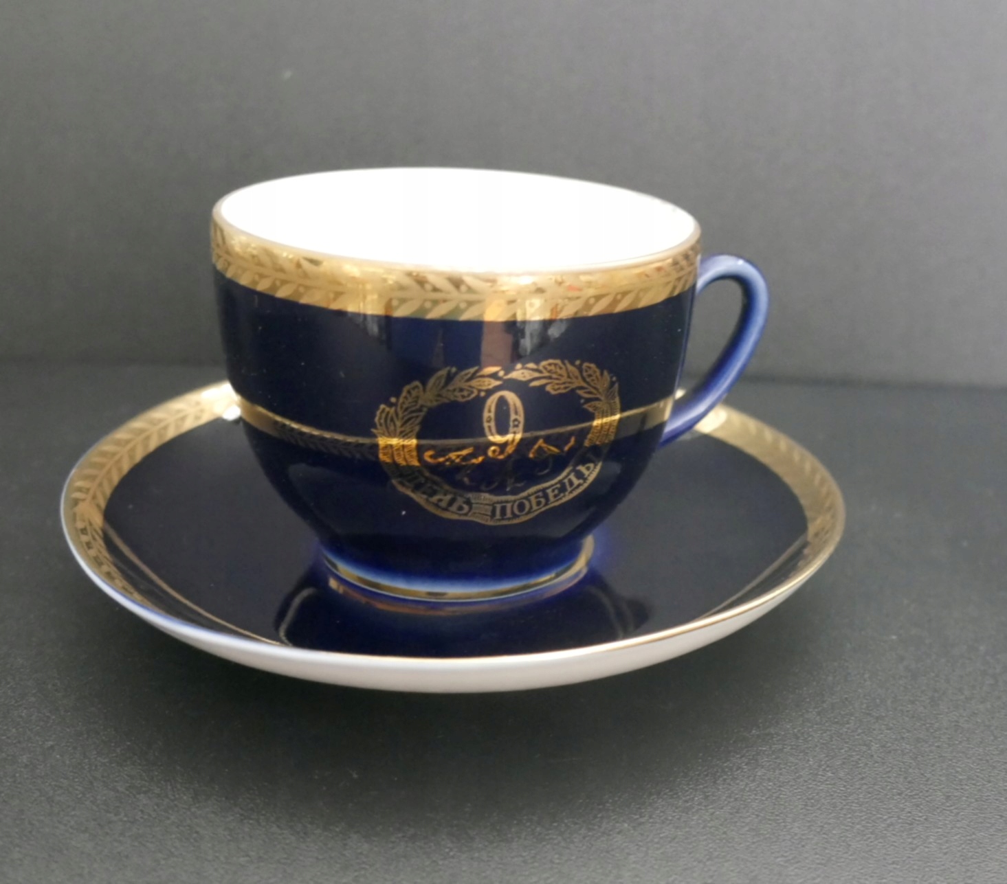 оздоблення - золотий напис на кобальтово-блакитному фоні