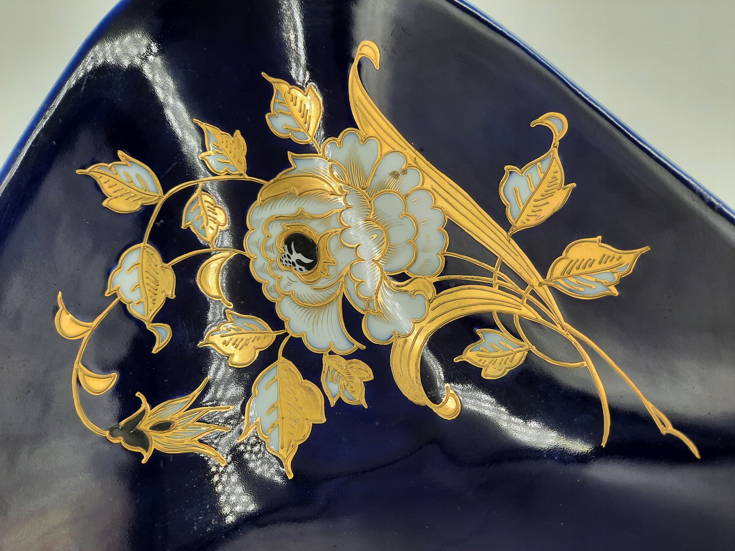 Кобальтова трикутна тарілка Wallendorf Goldrelief