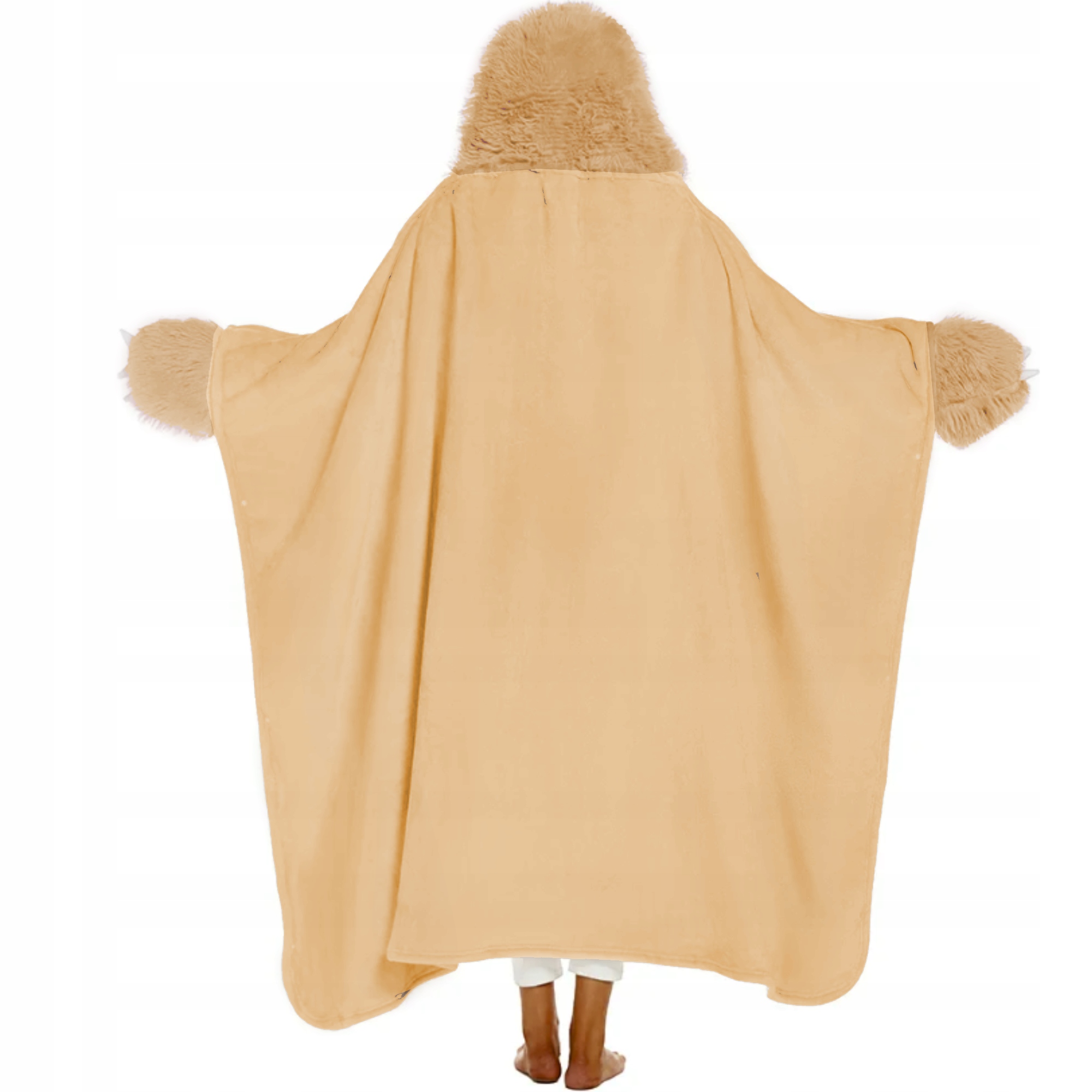 KOC Z KAPTUREM I RĘKAWAMI CIEPŁY NA PREZENT BEŻOWY LENIWIEC NARZUTA