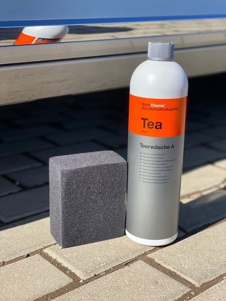 Koch Chemie Teerwasche Aспеціальний миючий засіб, що містить розчинник, нешкідливий для матеріалів, для легкого видалення гудрону та бітумної маси. Для всіх стійких до розчинників поверхонь автомобілів, комерційних транспортних засобів, щіток для мийки автомобілів, підлог у майстернях, машин тощо. Не містить галогенованих вуглеводнів. Він схвалений компанією Daimler.