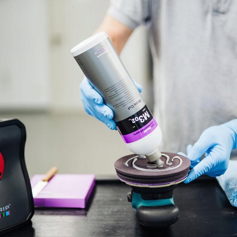 Koch Chemie Micro Cut PAD високоякісна спеціальна губка для остаточного видалення незначні подряпини, голограми та сліди полірування за допомогою Micro Cut M3.02 і Micro Cut & Finish P3.01. Висота лише 23 мм забезпечує менші сили деформації, дуже зручну роботу та найвищу стабільність. Виняткова щільність матеріалу, з якого виготовлена губка, гарантує, що вона залишається твердою навіть під час полірування. Завдяки своїй сітчастій (пінопластовій) структурі та відповідній пористості він залишає тривалий високий блиск, зберігаючи високий ступінь чистоти. Фрезеровані краї збільшують гнучкість полірувальної подушечки, що дозволяє їй краще адаптуватися до форми полірованого предмета. Колір матеріалу, підібраний до поліролю, підвищує безпеку процесів.