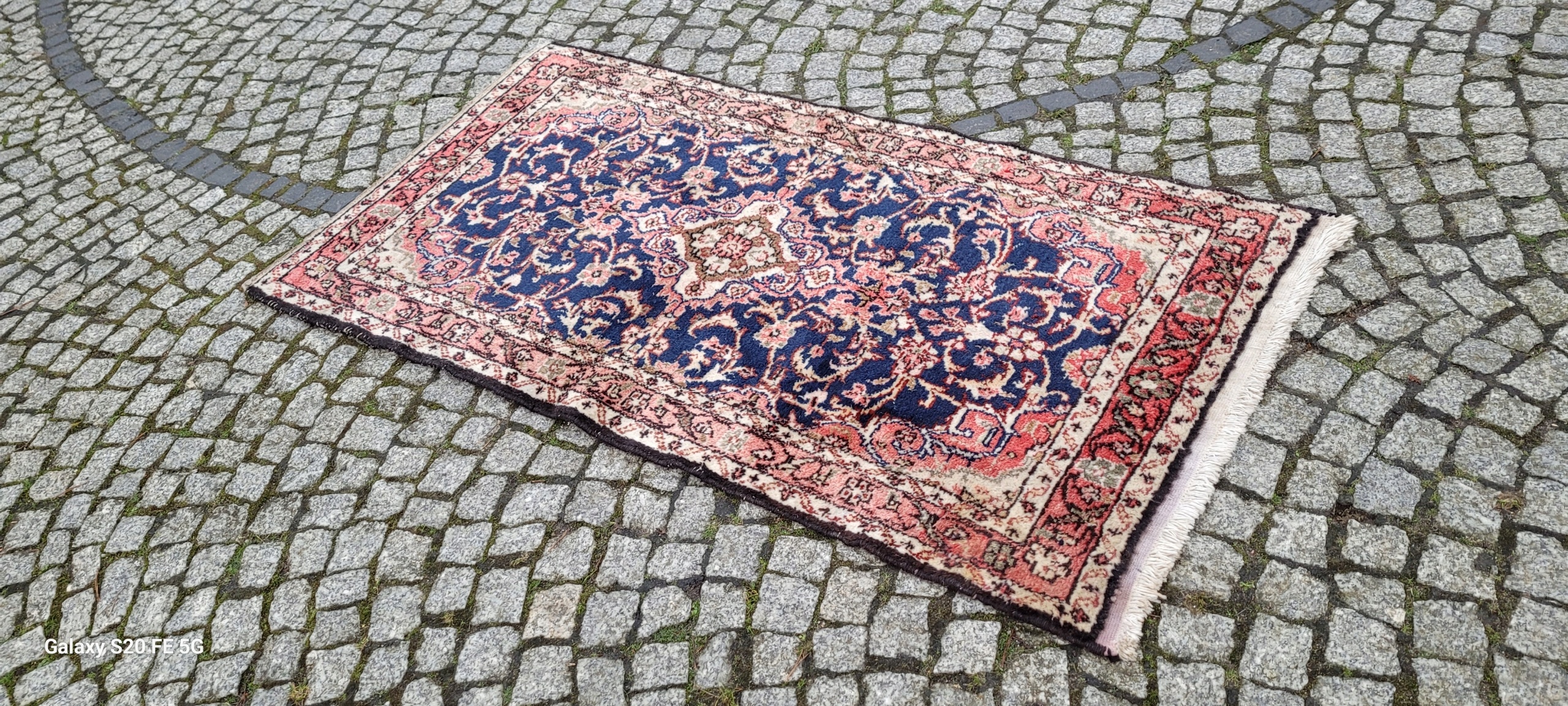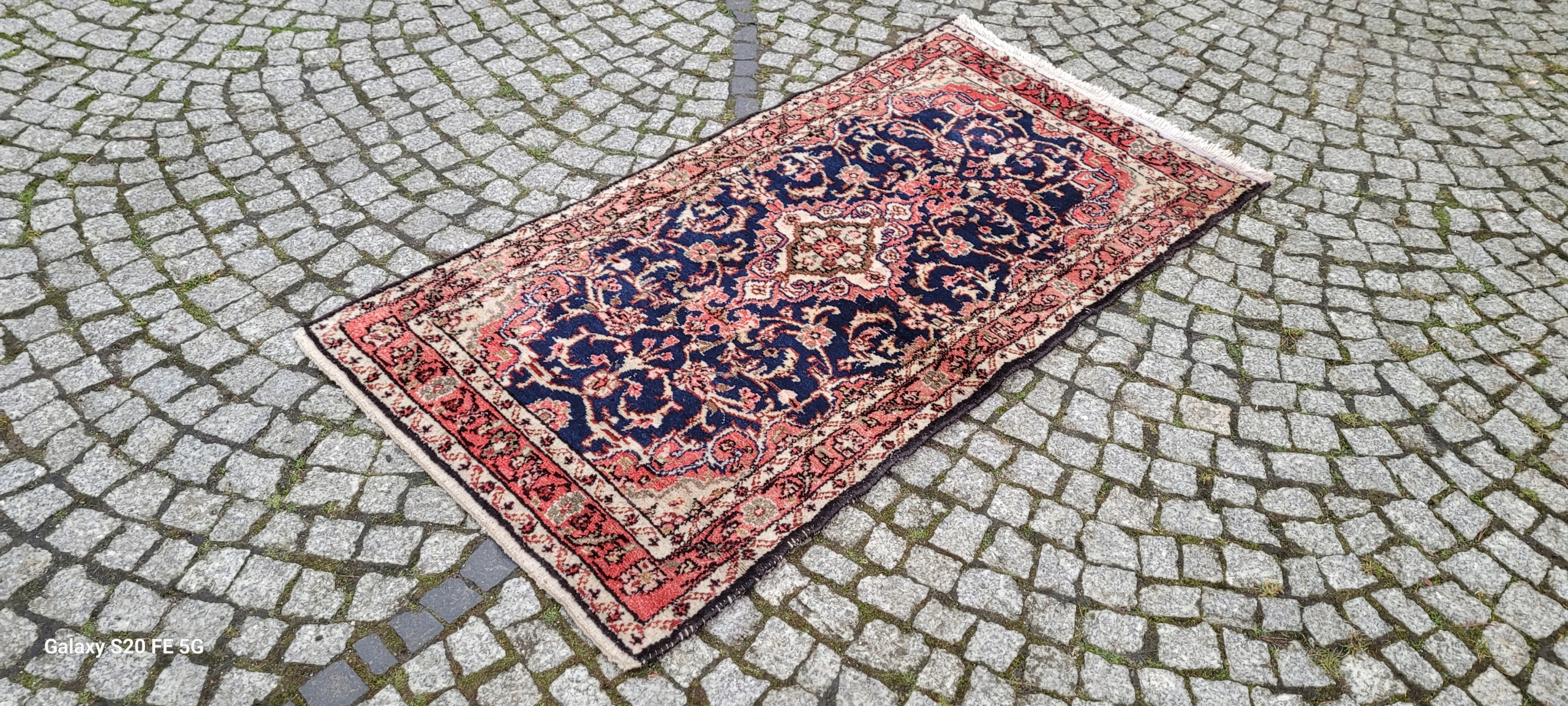 Перський килим Хамадан. Вручну виткана з вовни. Характеризується компактним, приємним на дотик, блискучим флісом і красивими кольорами та візерунками. В хорошому стані, видно на фото. Має невелику асиметрію.