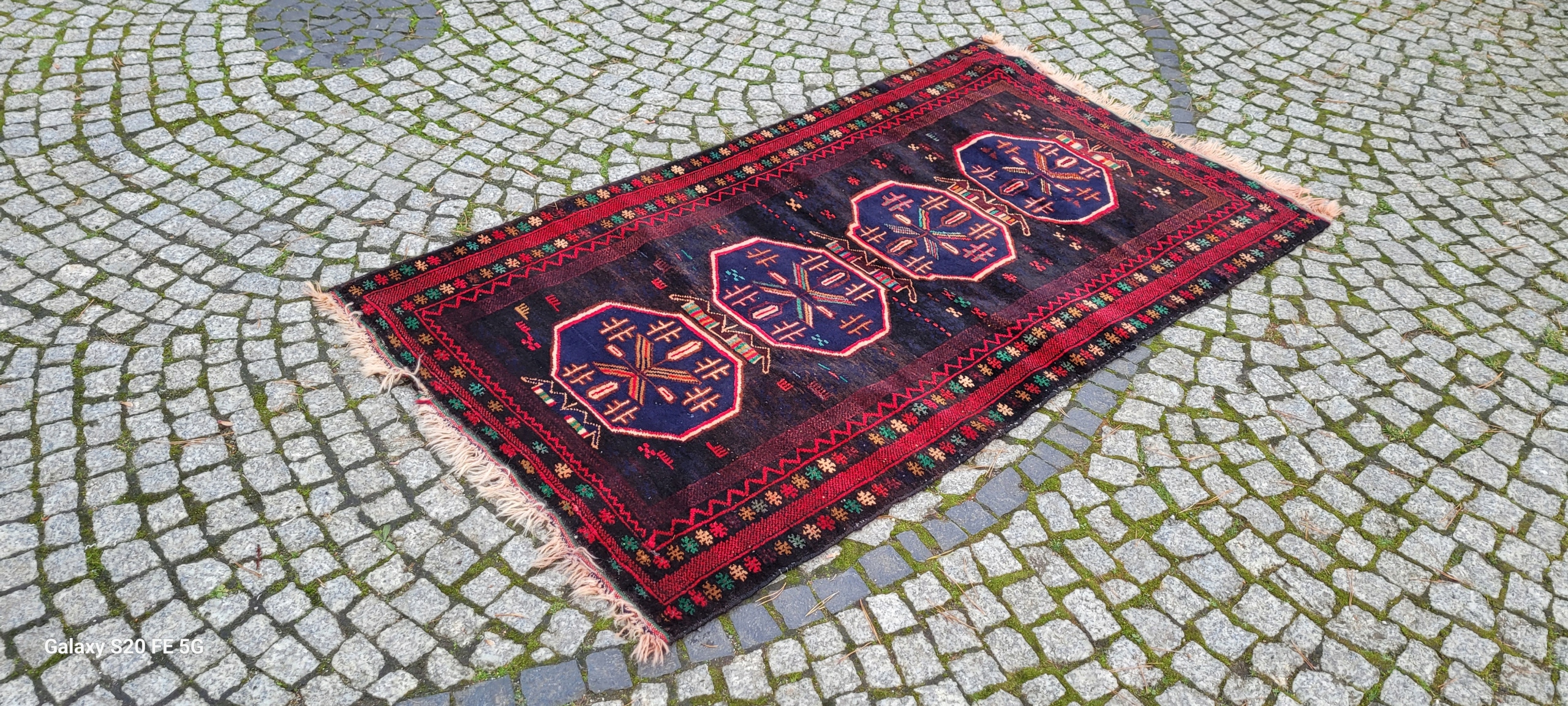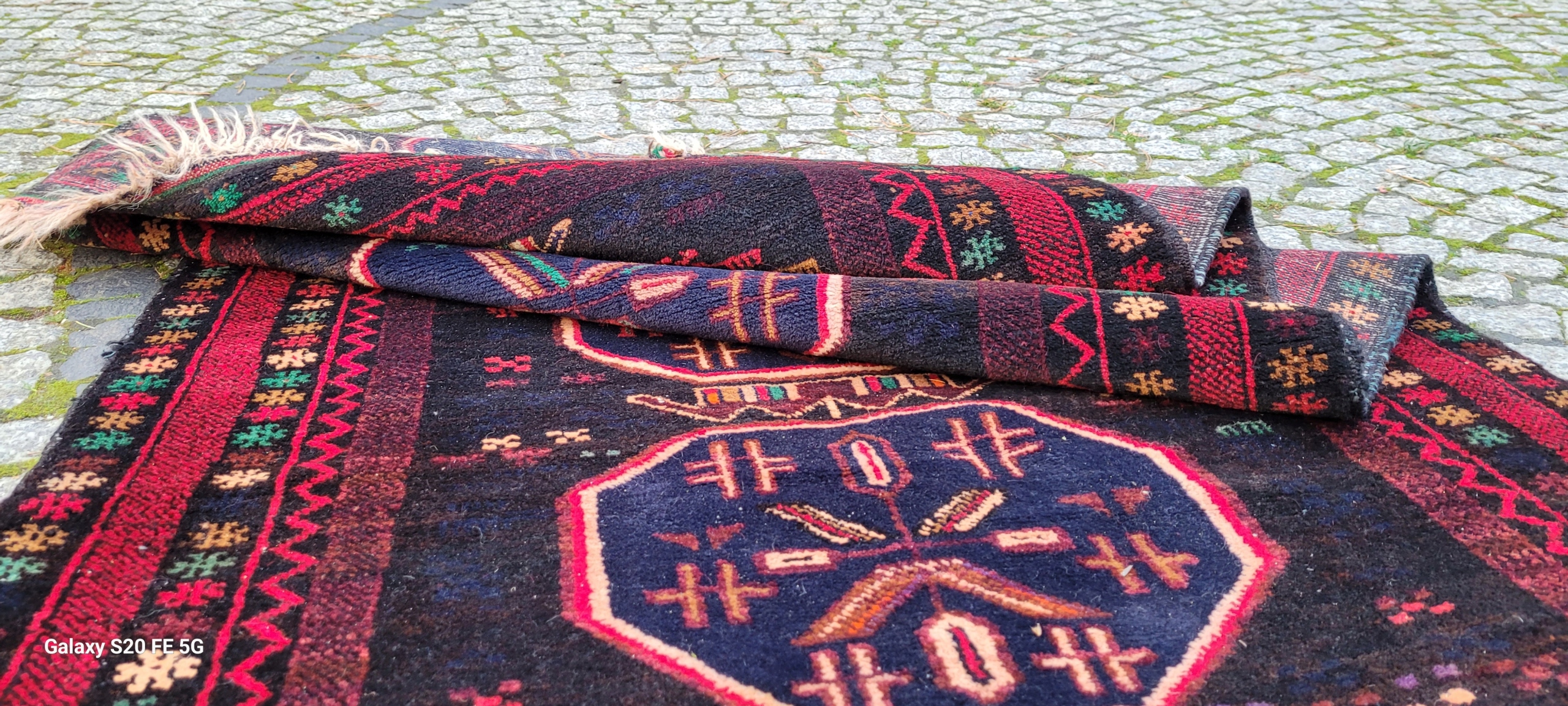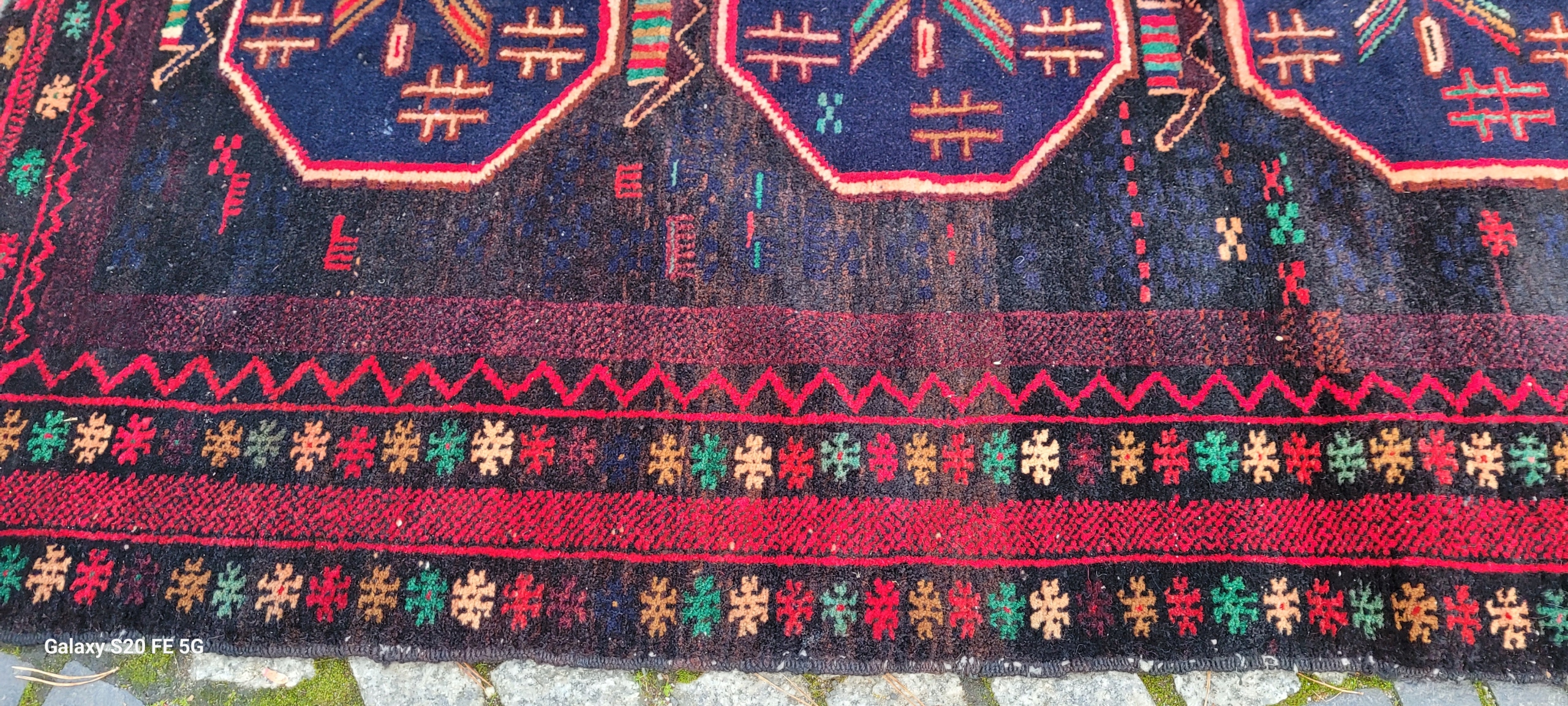 Кочовий килим Beluch. Виткана вручну з вовни найвищої якості. Характеризується щільним флісом і красивими кольорами та візерунками. У хорошому стані, видно на фотографіях.
