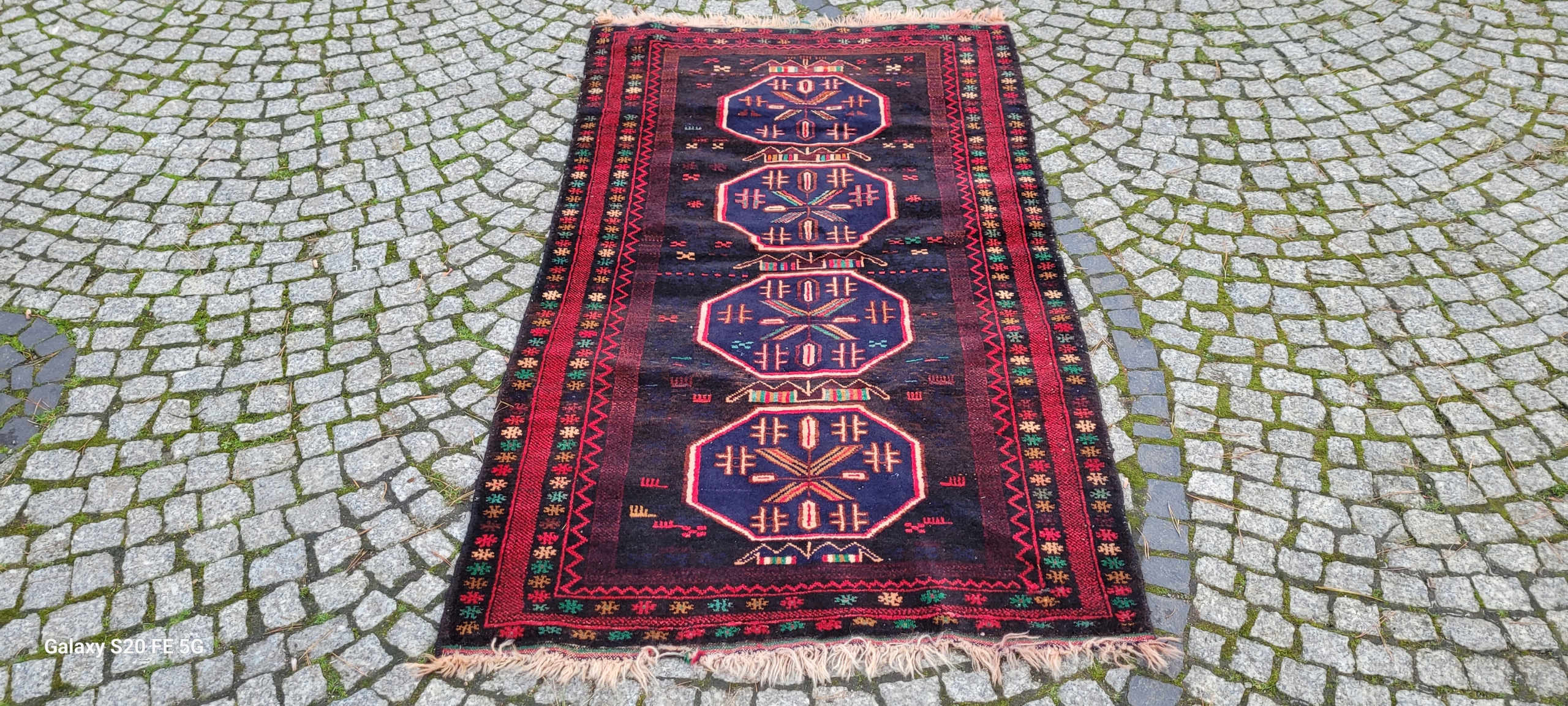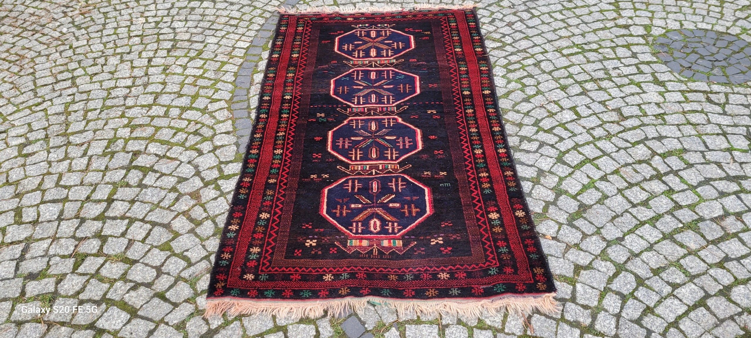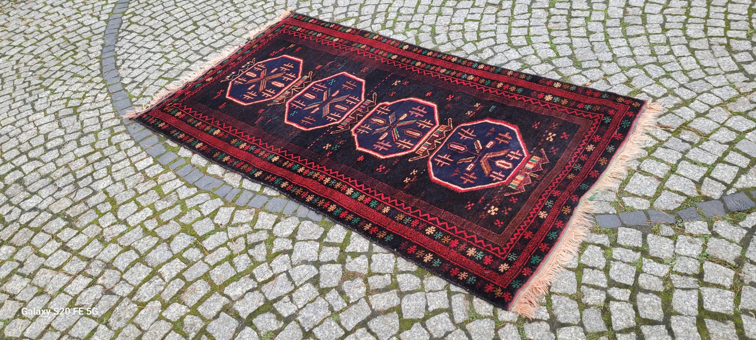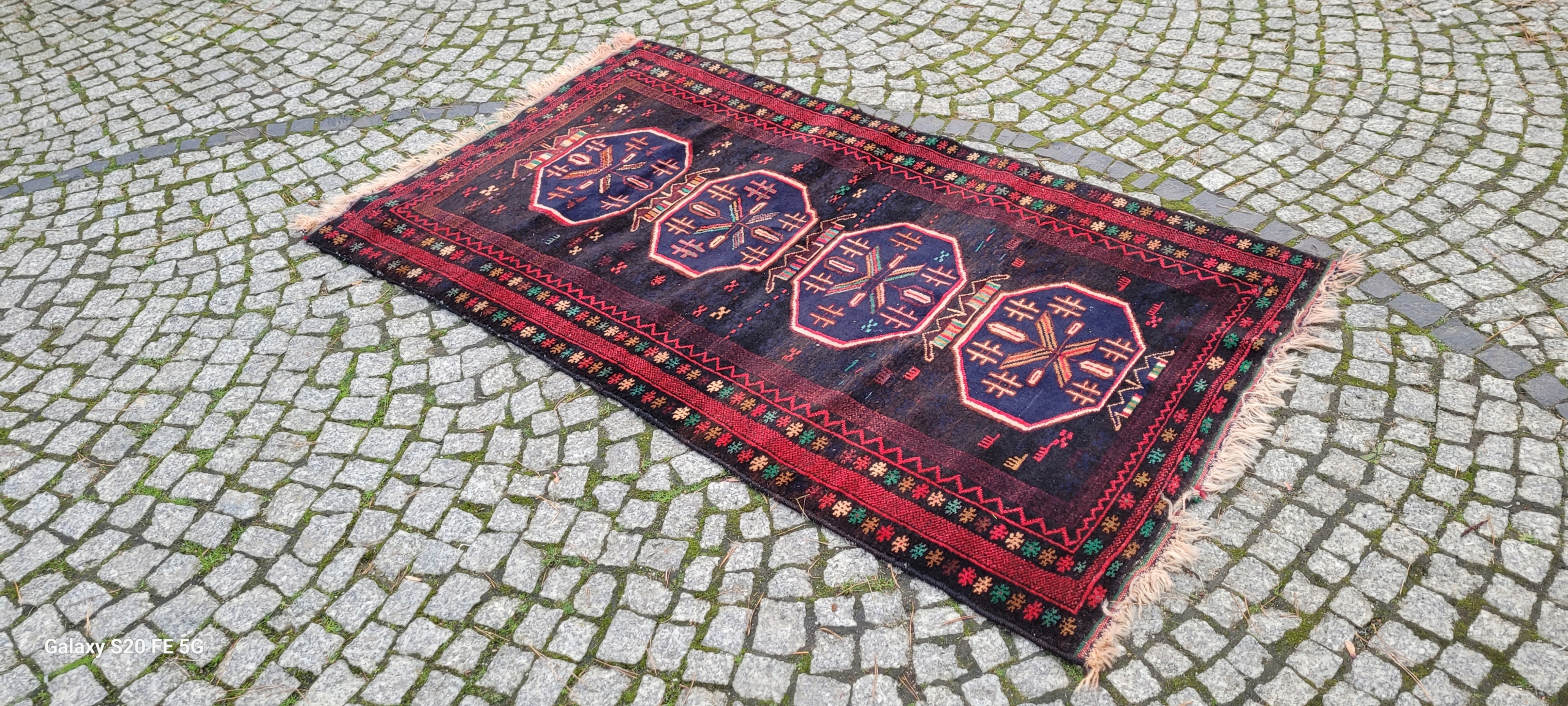 Кочовий килим Beluch. Виткана вручну з вовни найвищої якості. Характеризується щільним флісом і красивими кольорами та візерунками. У хорошому стані, видно на фотографіях.