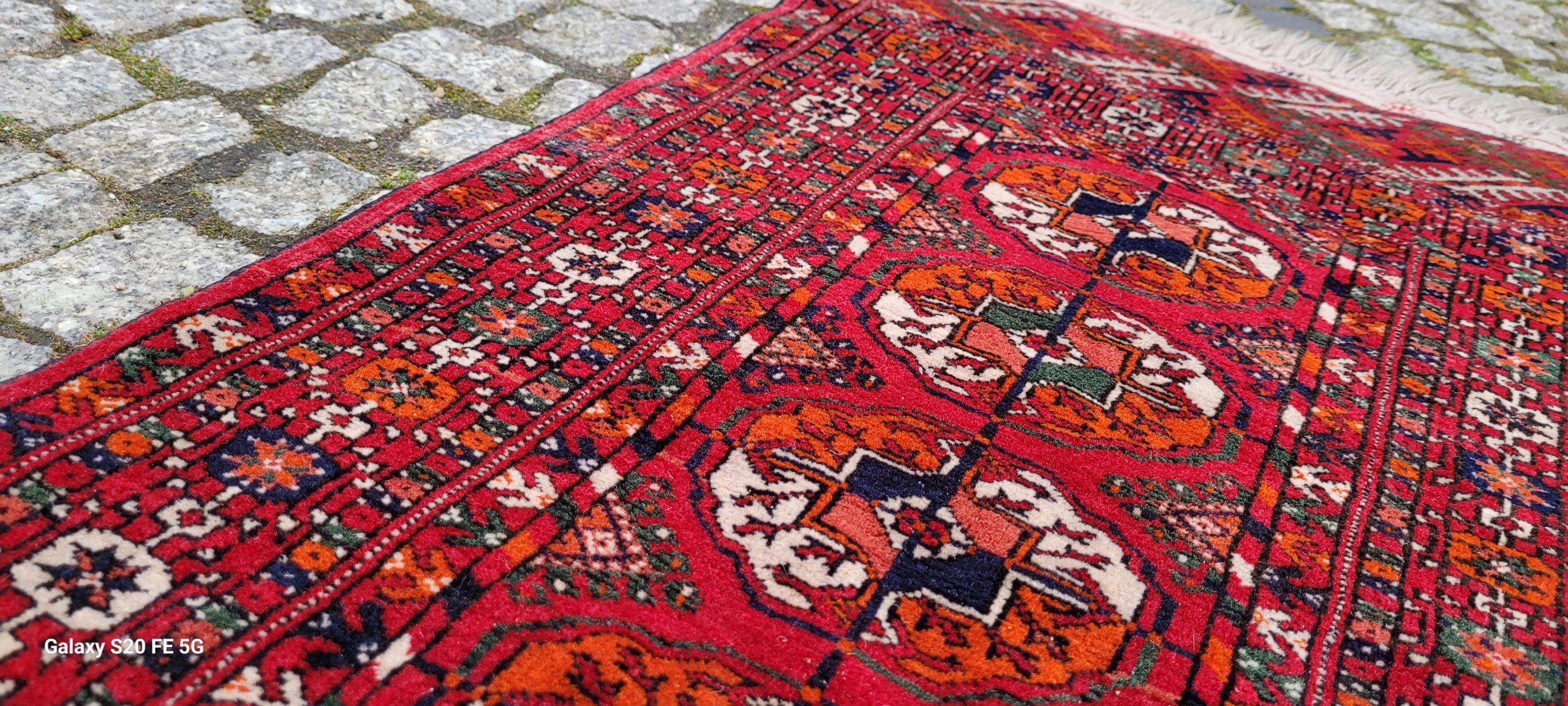 Кочовий туркменський килим. Виткана вручну з вовни найвищої якості. Характеризується щільним флісом і красивими кольорами та візерунками. Він у дуже хорошому стані, видно на фотографіях.