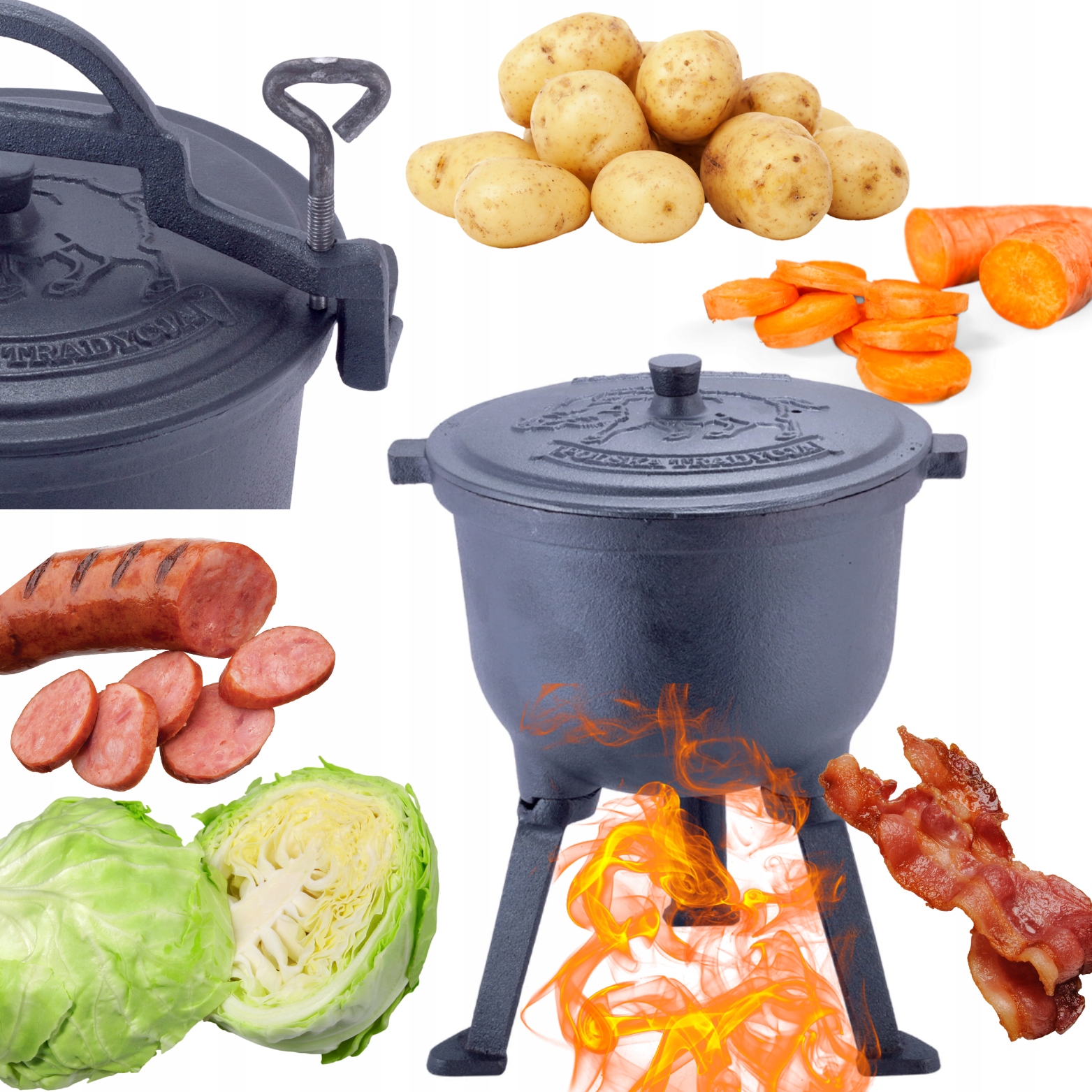 KOCIOŁEK MYŚLIWSKI GARNEK ŻELIWNY STOJĄCY NA OGNISKO 15 L KAMILLE