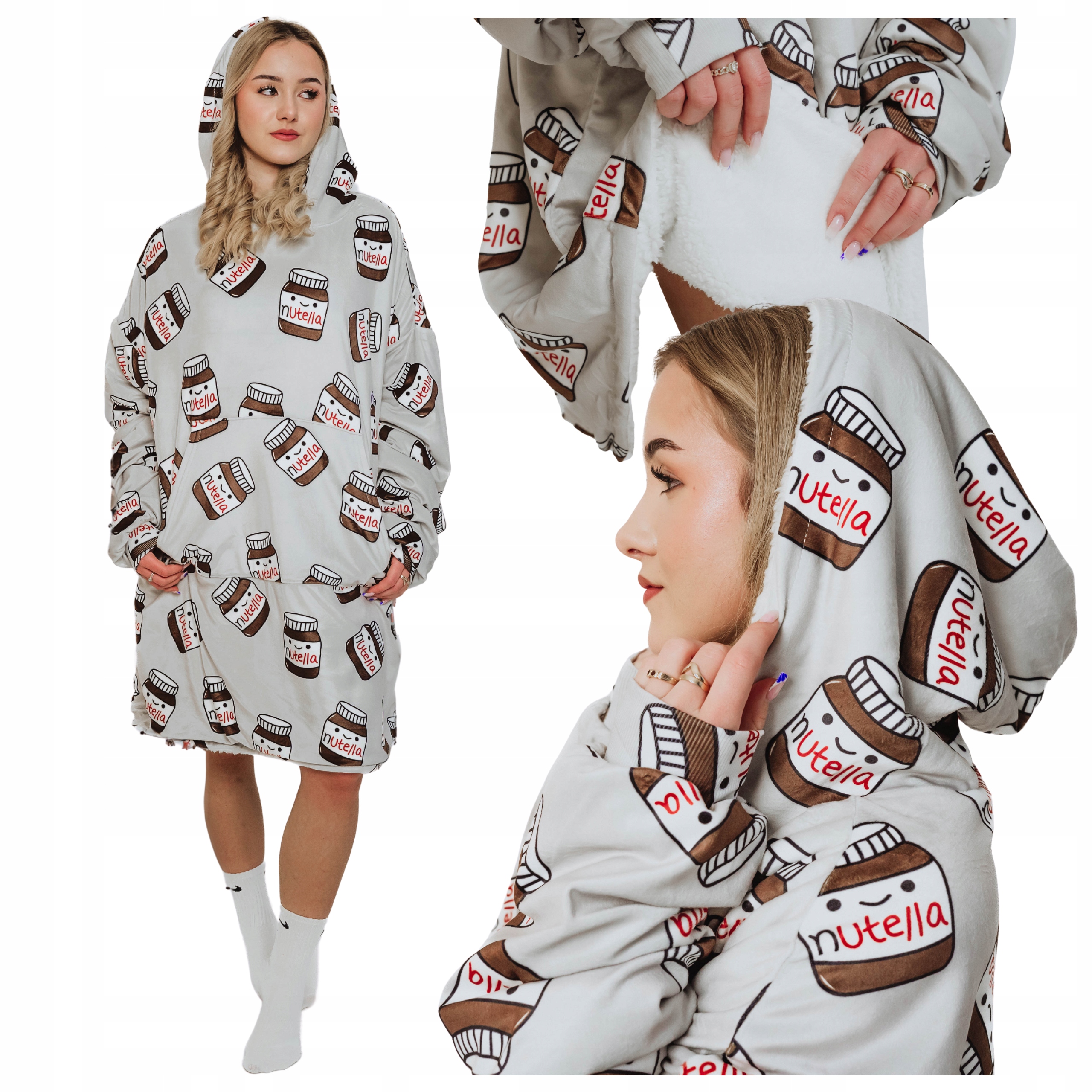 KOCOBLUZA DŁUGA z kapturem KOC BLUZA Oversize damska męska GRUBA szara wzór