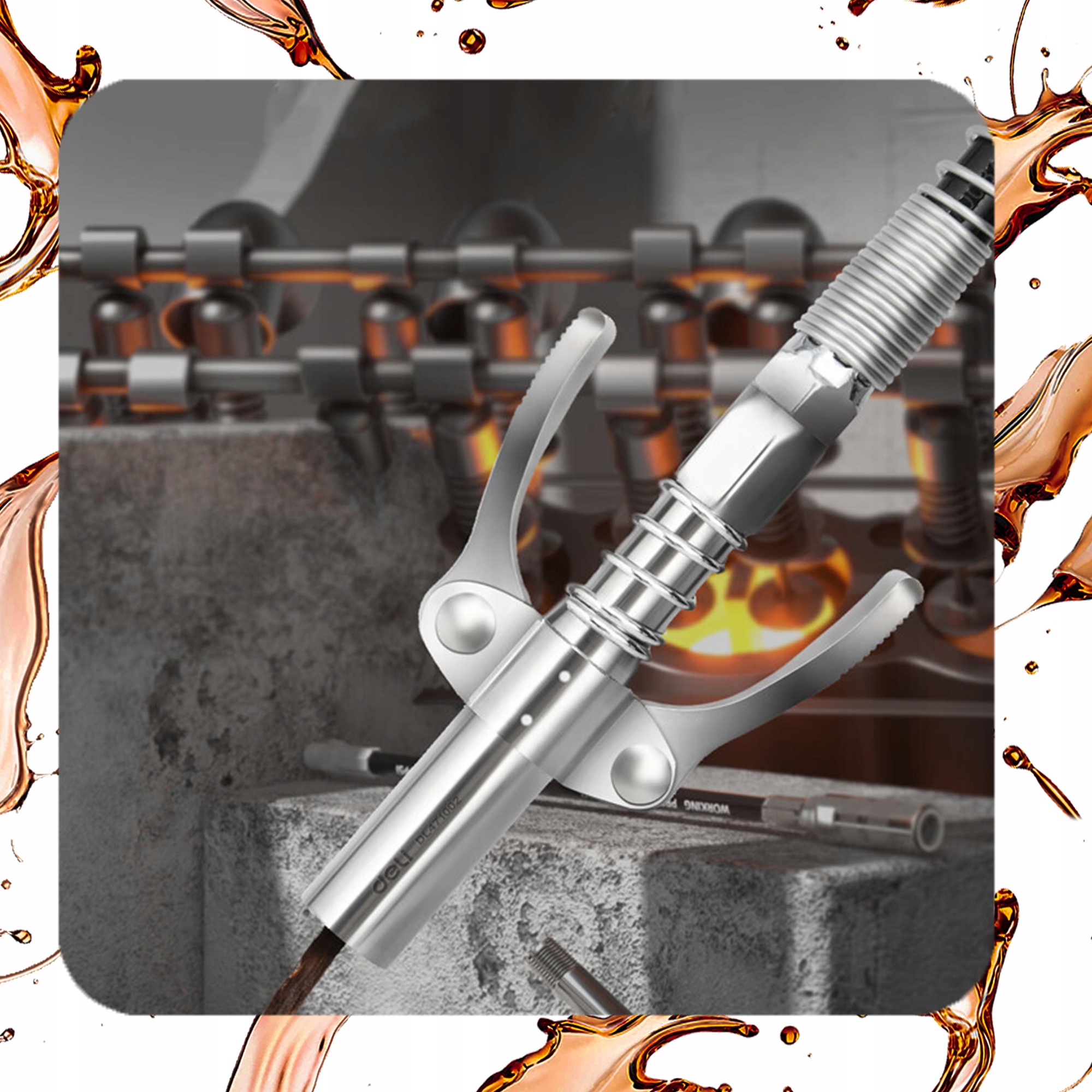 - ➡️ Безпека: система самоблокування запобігає випадковому витоку мастила та високий опір для тиску (до 10 000 PSI) гарантує безпечне використання.