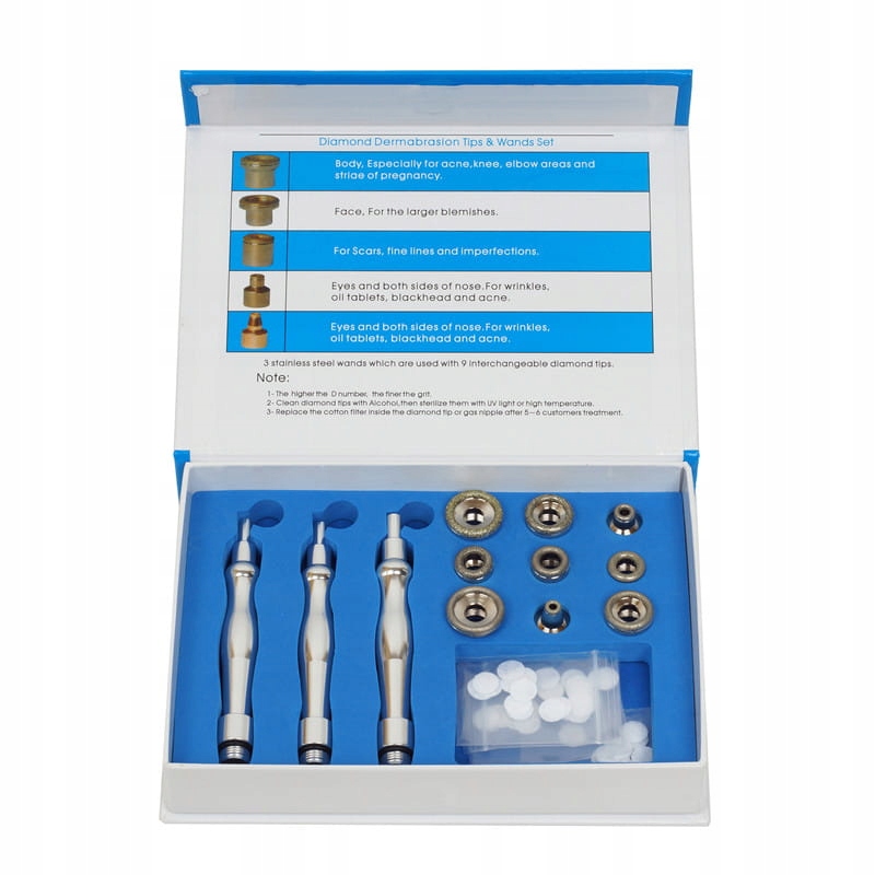 Високоякісний набір із 3 насадок і 9 насадок для алмазної мікродермабразії.