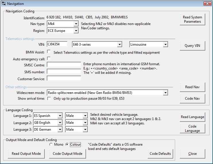 - кодування навігації MK2, MK3, MK4 (наприклад, зміна мови, моно/кольоровий дисплей, налаштування розділення екрана, зміна регіональних налаштувань)