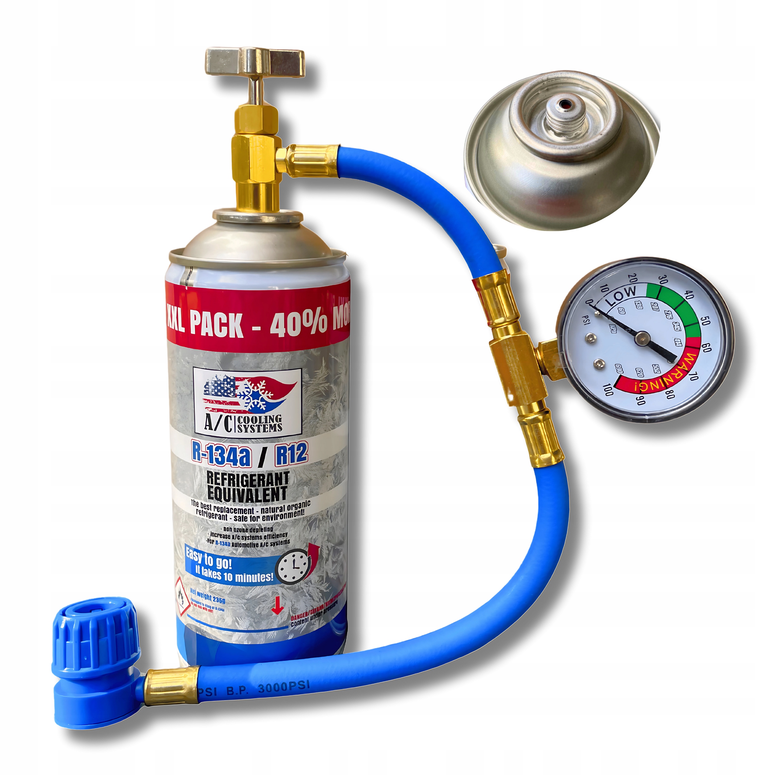 <Легко і швидко - кілька хвилин і змія з манометром тиску, вам не потрібні додаткові інструменти.✔ Він повністю безпечний для системи кондиціонування - він не має негативного впливу на компресор або інші компоненти, не має корозійних властивостей і не створює кислот у поєднанні з вологою. Кабель змушує газ виходити, як банки, які потрібно пробити. Банку можна заповнити багато разів.