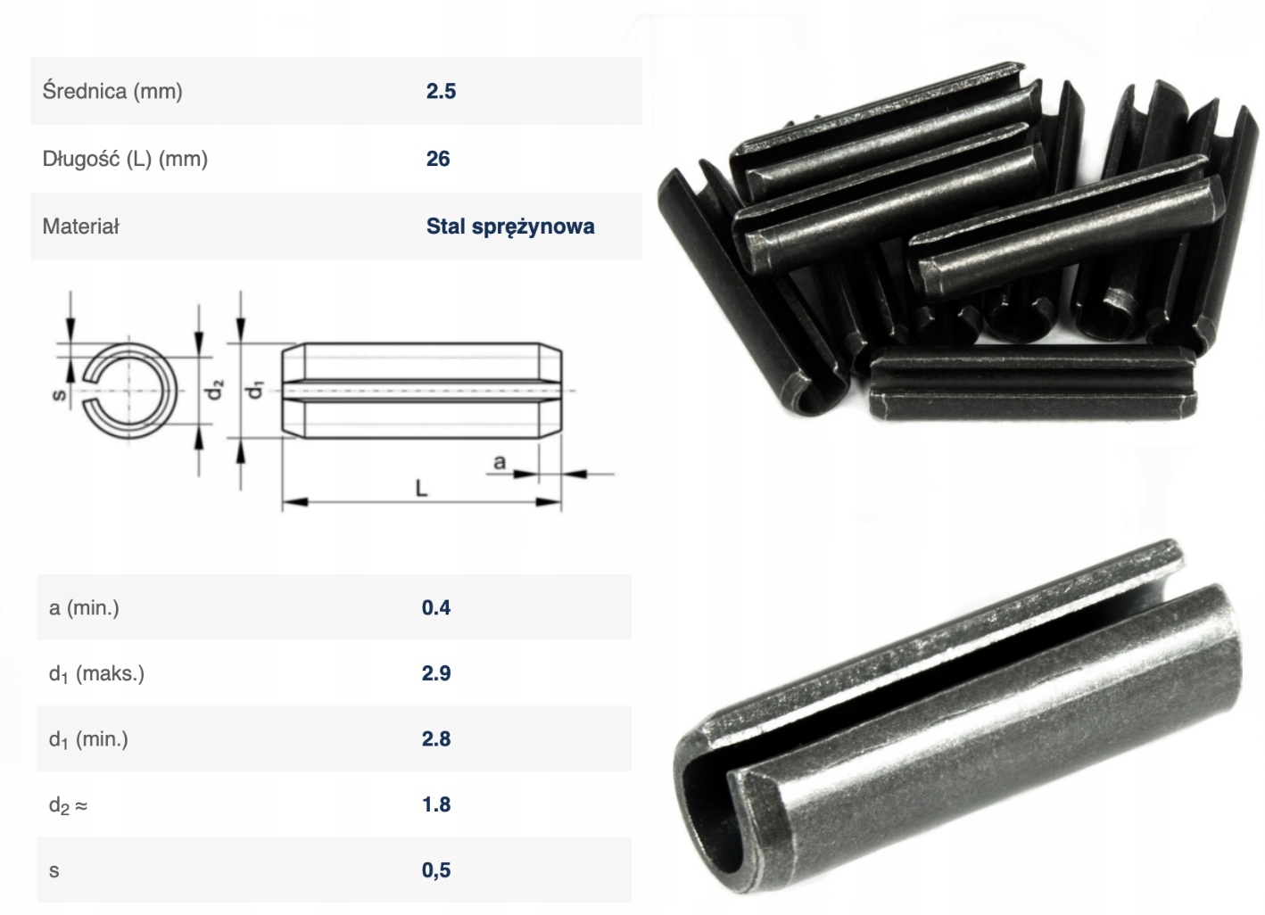 Kołek sprężysty DIN 1481 CZ 2,5x26mm 100шт