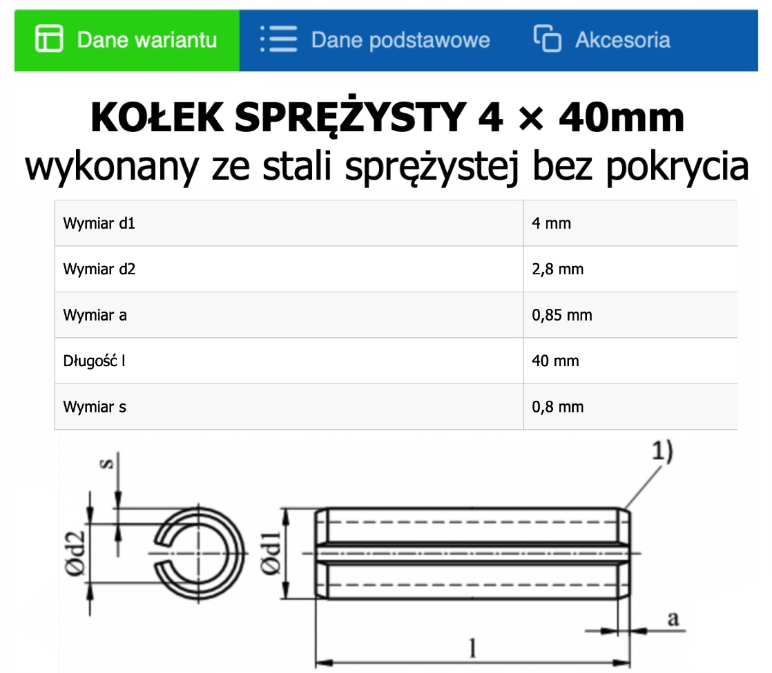 Kołek sprężysty DIN 1481 stal sprężynowa 4x40mm 100sztuk