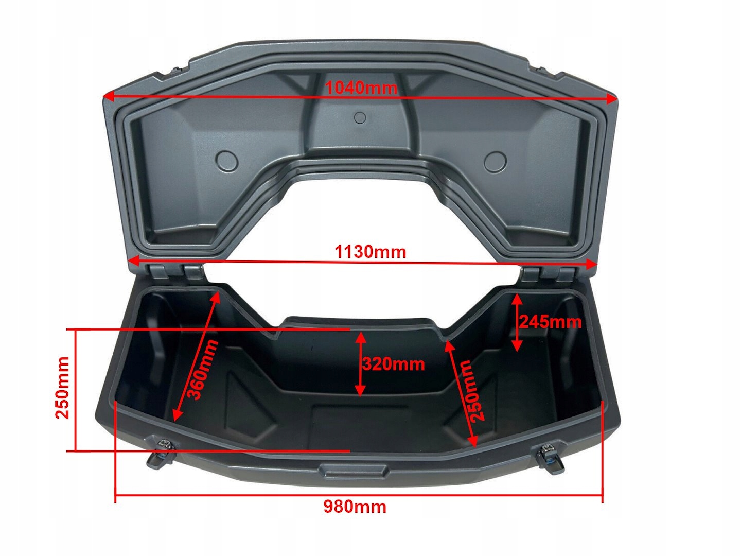 Універсальна велика коробка, призначена для багатьох моделей квадроциклів. Встановлюється на задній частині багажника. У комплект входить набір кріпильних кронштейнів. Закривається на 2 замки. Має 2 рефлектора. Абсолютно новий товар.