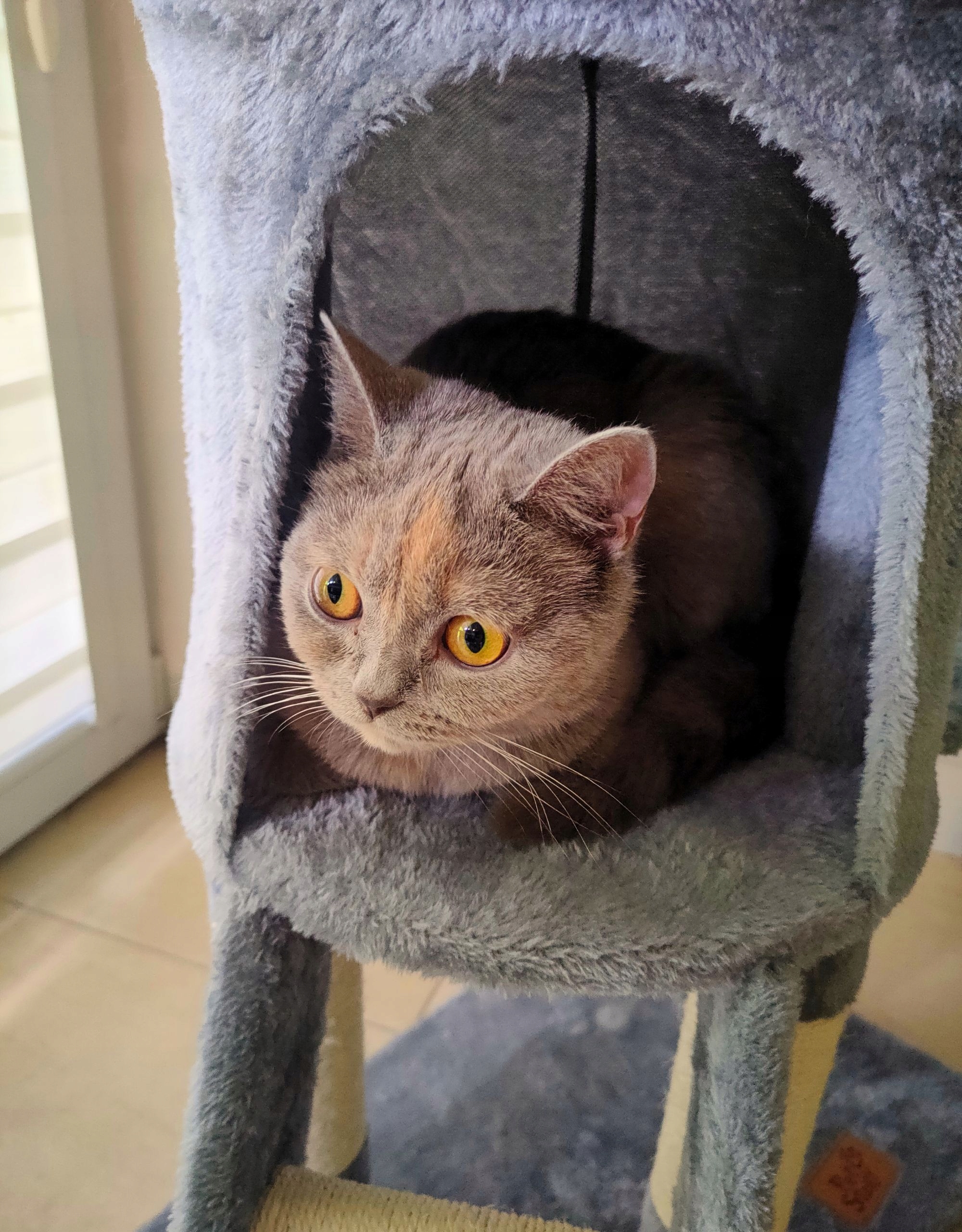 Міцна основа не тільки забезпечує стабільність всієї конструкції, але також служить зручним місцем для лежання та дрімання. Платформа, покрита м’яким сірим плюшем, дарує комфорт і тепло.