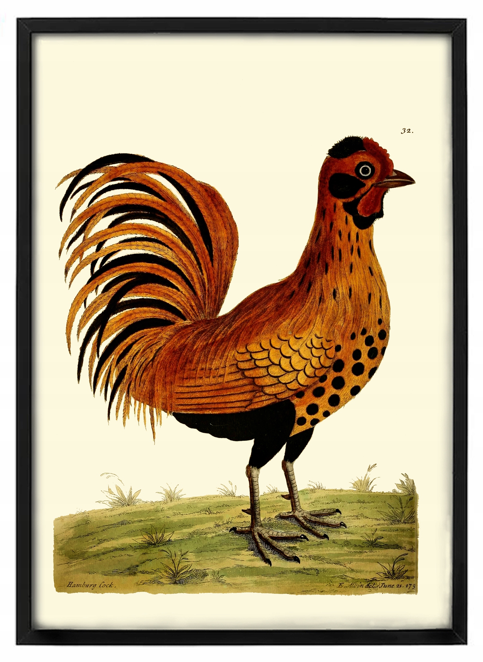 KOGUCIK, reprint miedziorytu VINTAGE, PTAKI DOMOWE