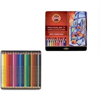 Високоякісні олівці POLYCOLOR 24 чудових кольорів - упаковані в металеву коробку. p>