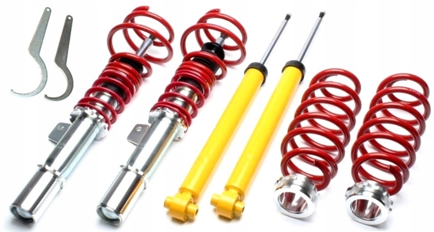 - Набір включає: повну передню та задню різьбові підвіски та гайкові ключі для регулювання висоти