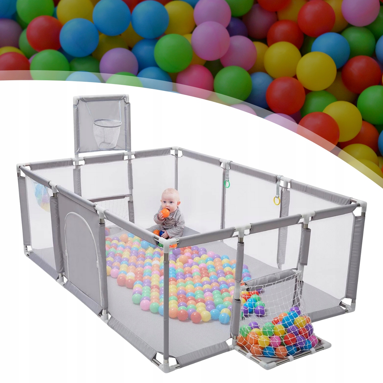 KOJEC DLA DZIECI PARK PLAC ZABAW SUCHY BASEN 180x120 DUŻY STABILNY SZARY