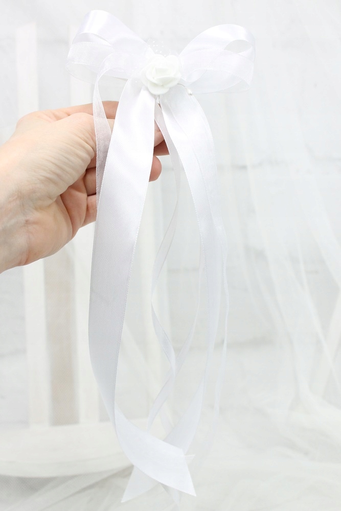 Kokarda satynowa grzebyk do wpięcia komunia styl
