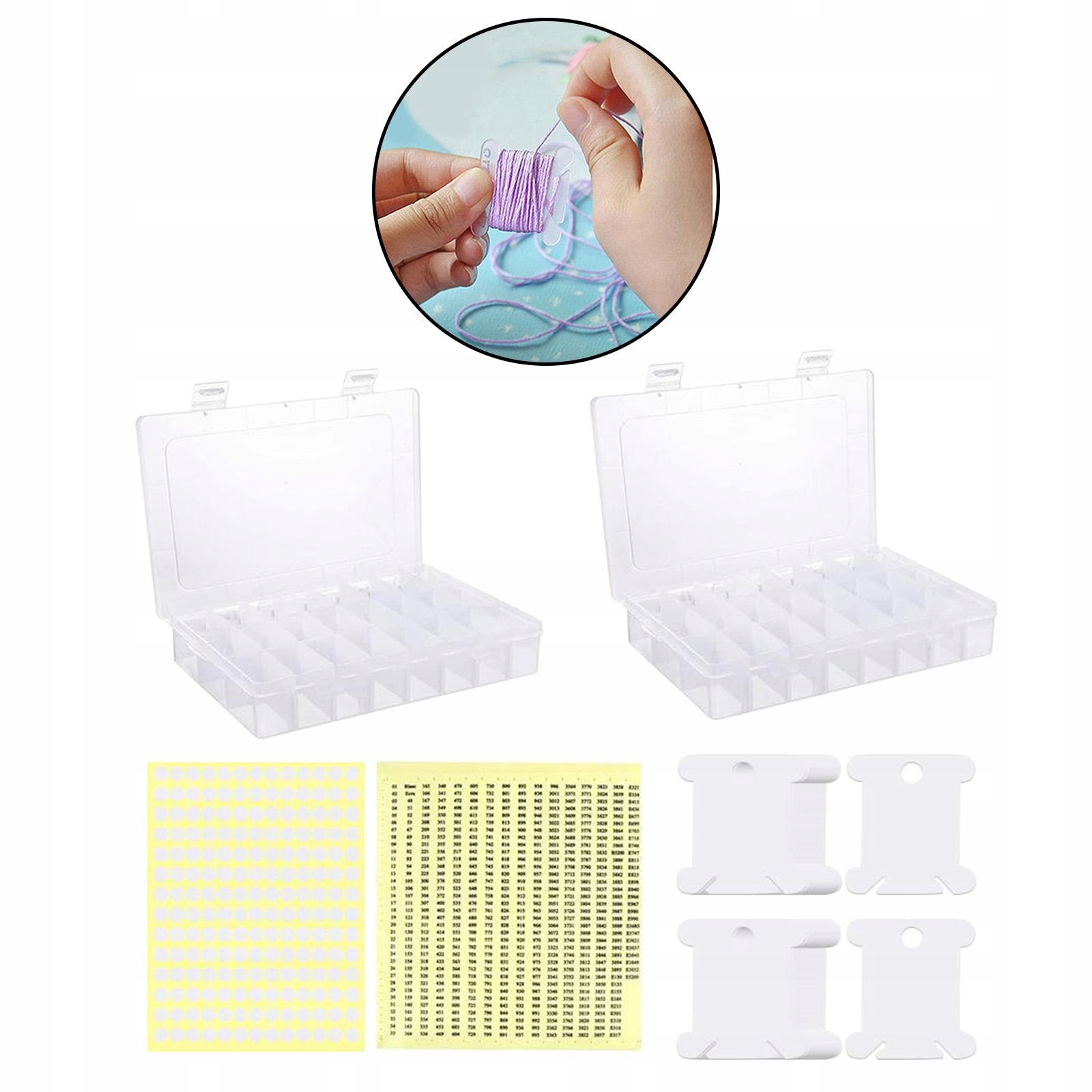 Упаковка: 300 штук білого кольору котушки для нитки, 4 штуки, 24 регульованих відділення, ящики для зберігання, аркуш із наклейками з номерами кольорів та аркуш із наклейками.