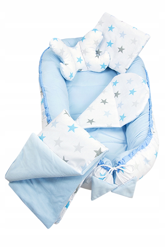 Кокон виготовлено з безпечних матеріалів найвищої якості. Набір двосторонній. Одна сторона виготовлена зі 100% бавовняної тканини, інша – з приємного на дотик теплого оксамиту.