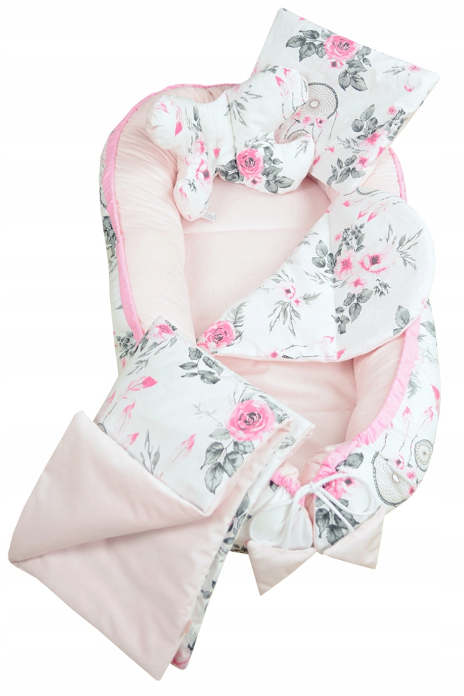 Кокон виготовлено з безпечних матеріалів найвищої якості. Набір двосторонній. Одна сторона виготовлена зі 100% бавовняної тканини, інша – з приємного на дотик теплого оксамиту.