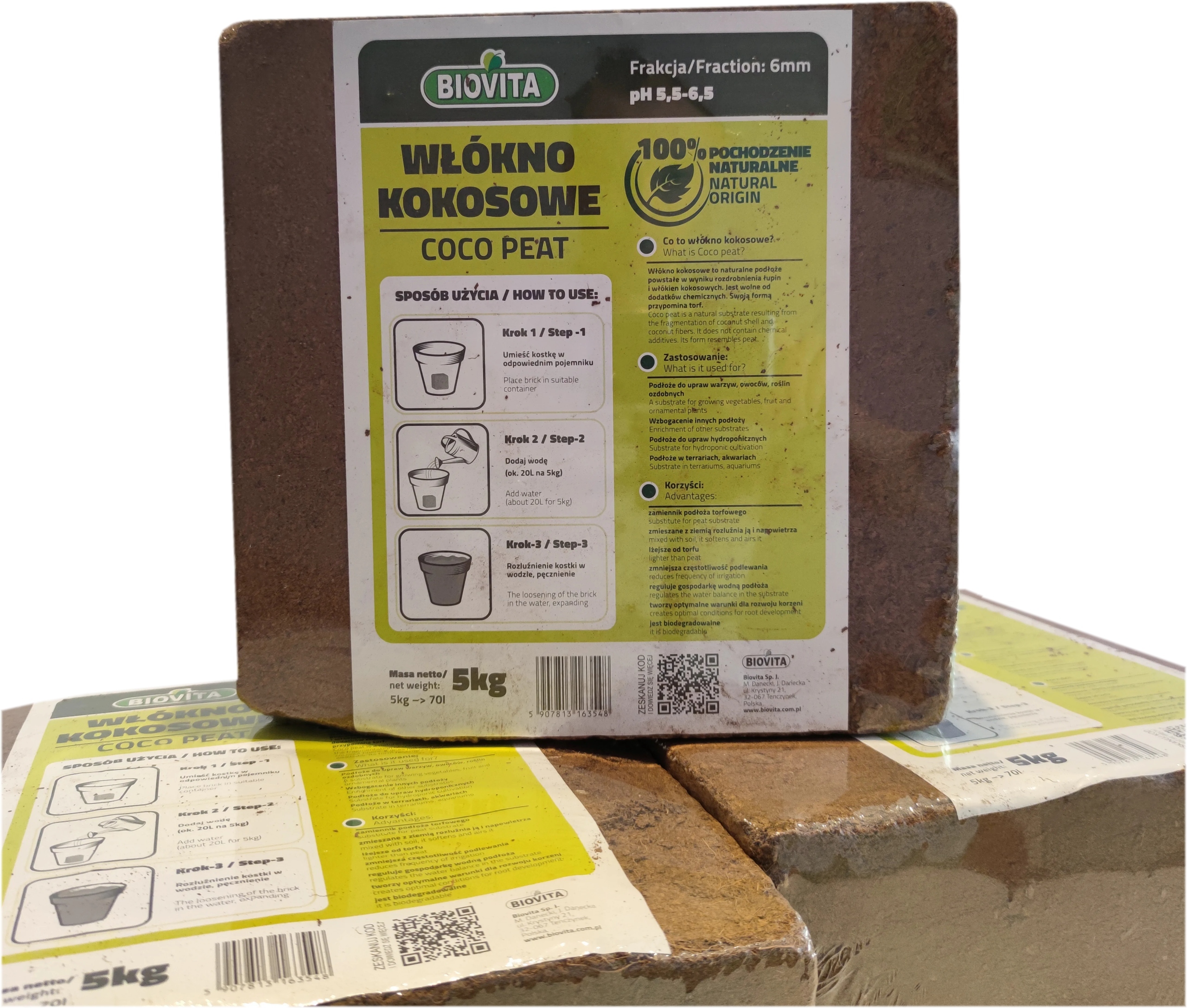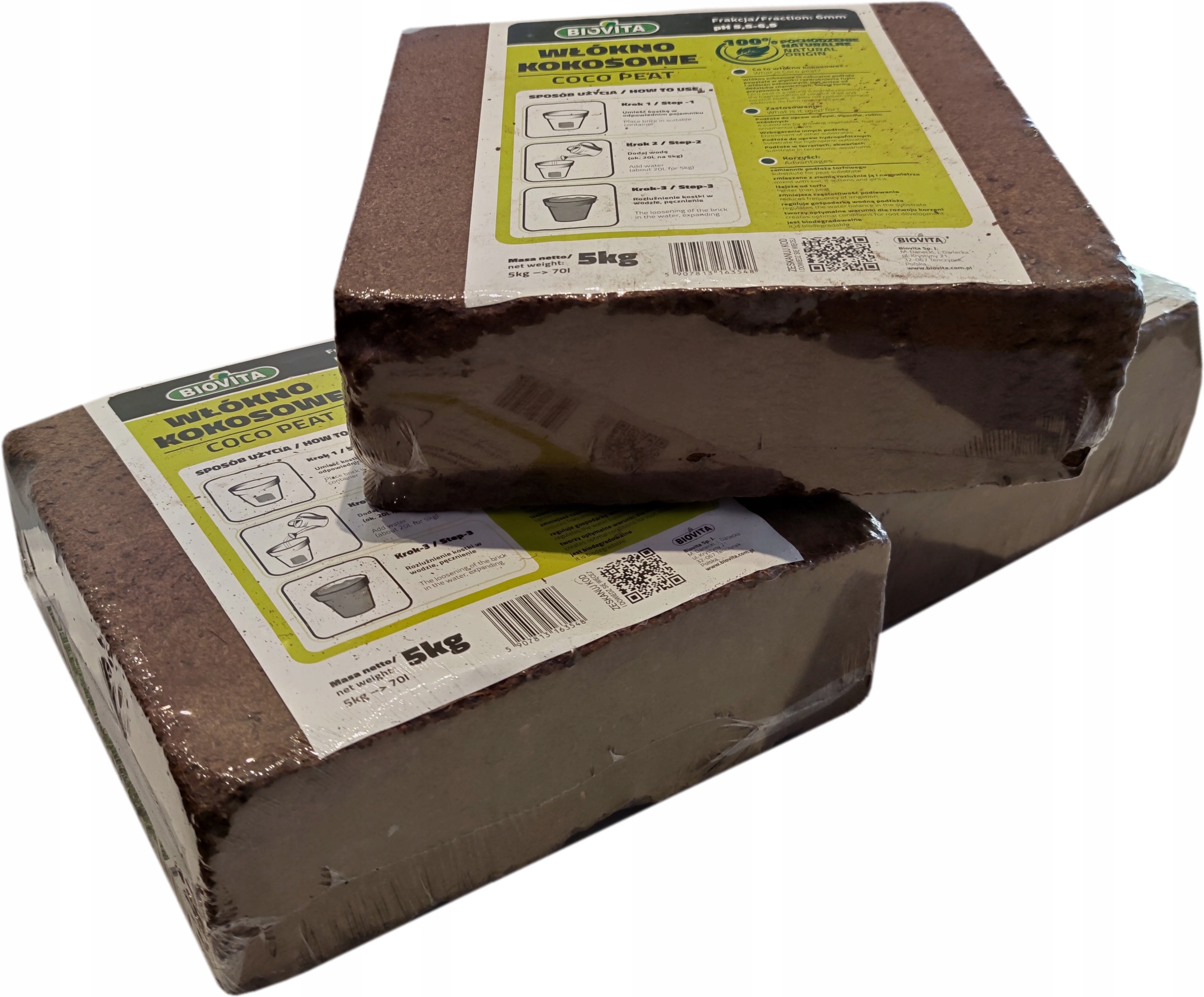 КОКОСОВЕ ВОЛОКНО 6мм ТОРФОВИЙ СУБСТРАТ КОКО БРИКЕТ 5кг 70л BIOVITA