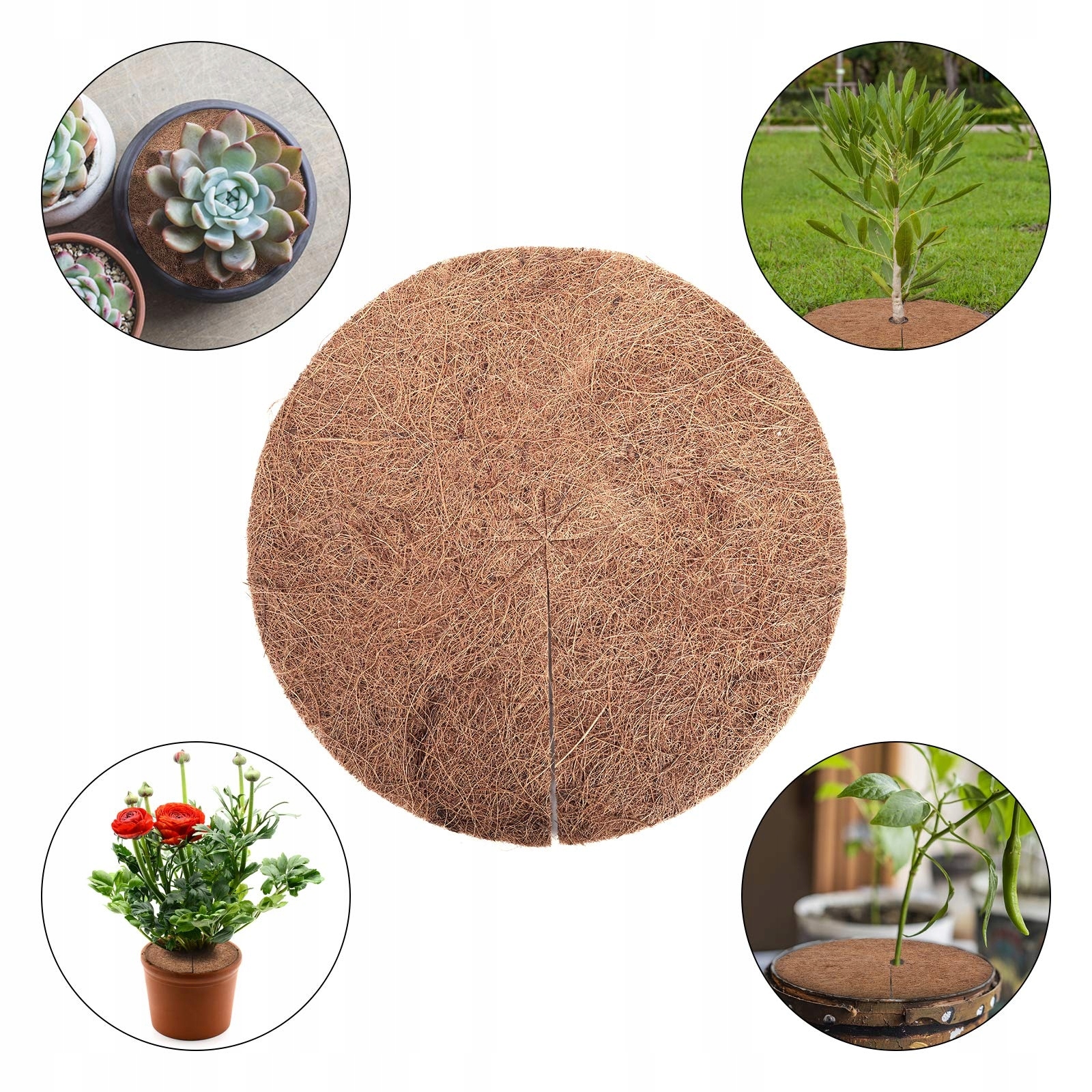 Попередньо виготовлені диски з кокосового килимка можна використовувати для захисту рослин від бур’янів, сонця чи інших зовнішніх факторів.