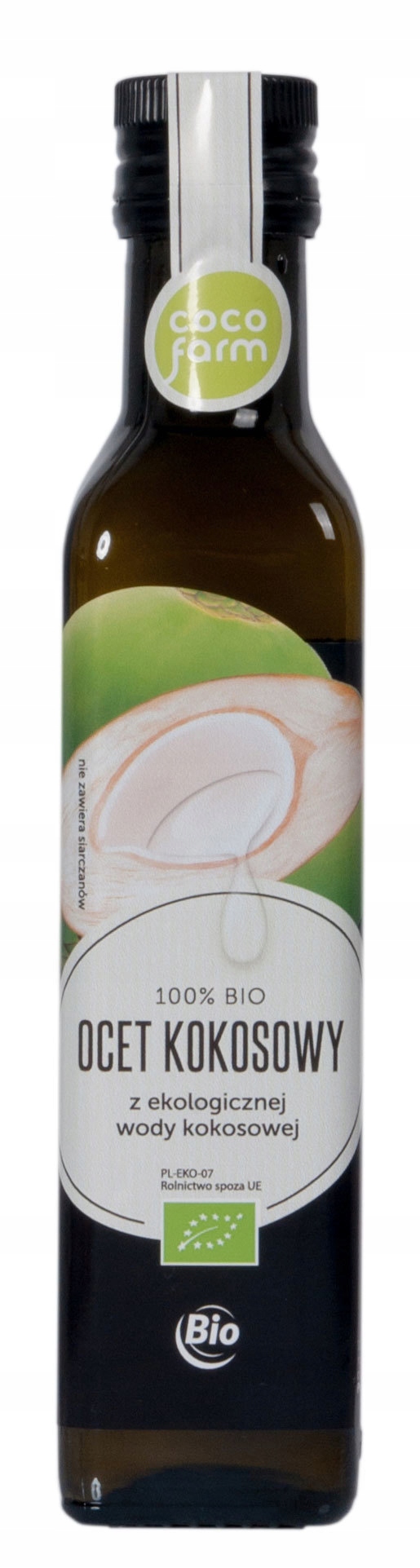 Кокосовий оцет 100% BIO виробляється в результаті тривалого природного бродіння води із зеленого свіжого кокосового горіха без використання хімікатів або прискорювачів процесу, таких як сульфати.