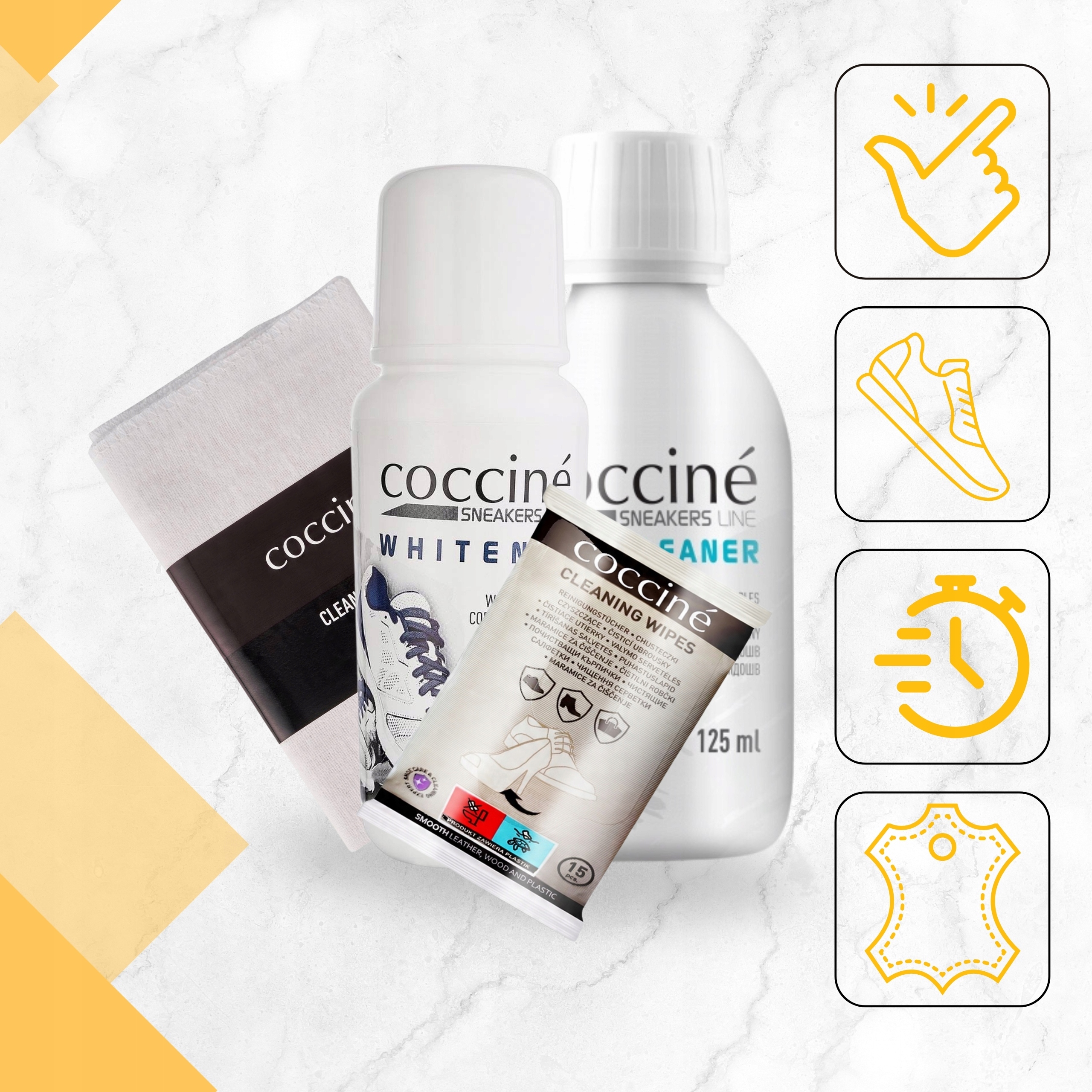 кросівки з кокцином Whitener - це незамінна підготовка до догляду за білими видами спорту та повсякденним взуттям. Ефективно очищає, поновлює та захищає взуття, відновлюючи його свіжий, елегантний вигляд. Виберіть перевірену якість бренду кокцину та насолоджуйтесь бездоганно білим взуттям щодня!