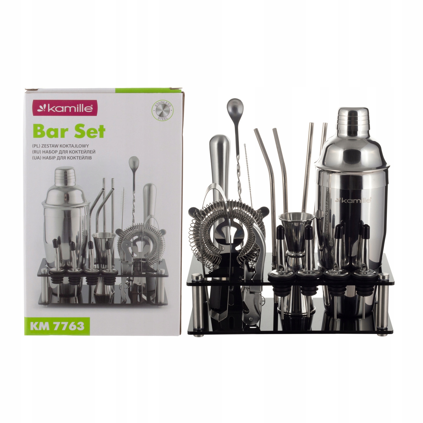Практичний набір для бармена Kamille, завдяки якому ви зможете легко і швидко готувати напої та коктейлі. Він буде незамінний на домашніх вечірках, барбекю та заходах просто неба.