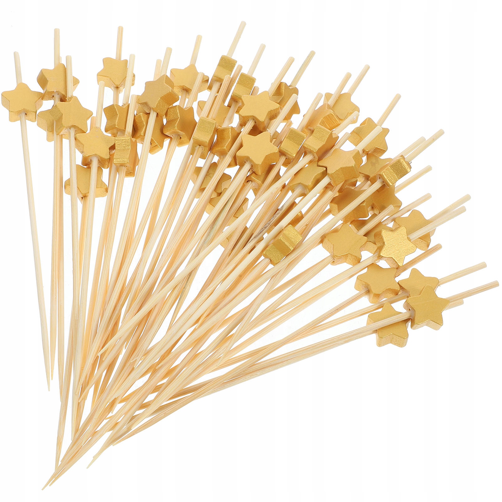 КОКТЕЙЛЬНІ ДЕКОРАТИВНІ ПАЛЬЧИКИ 100 ШТ. ЗОЛОТІ ЗІРКИ ДЛЯ ЗЕМЛІВ І ДЕКОР.