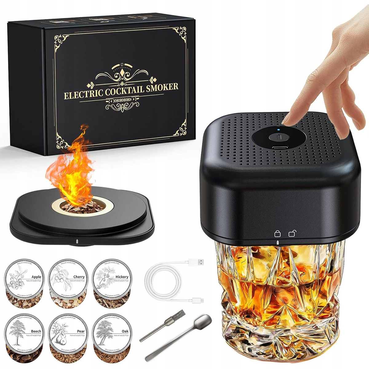 Наш набір вирізняється своєю електричною конструкцією. Він простий у використанні та усуває складні дії вручну. Електрична частина дозволяє точно контролювати кількість диму та час копчення, забезпечуючи незмінні результати незалежно від того, використовуєте ви її для віскі чи коктейлів.