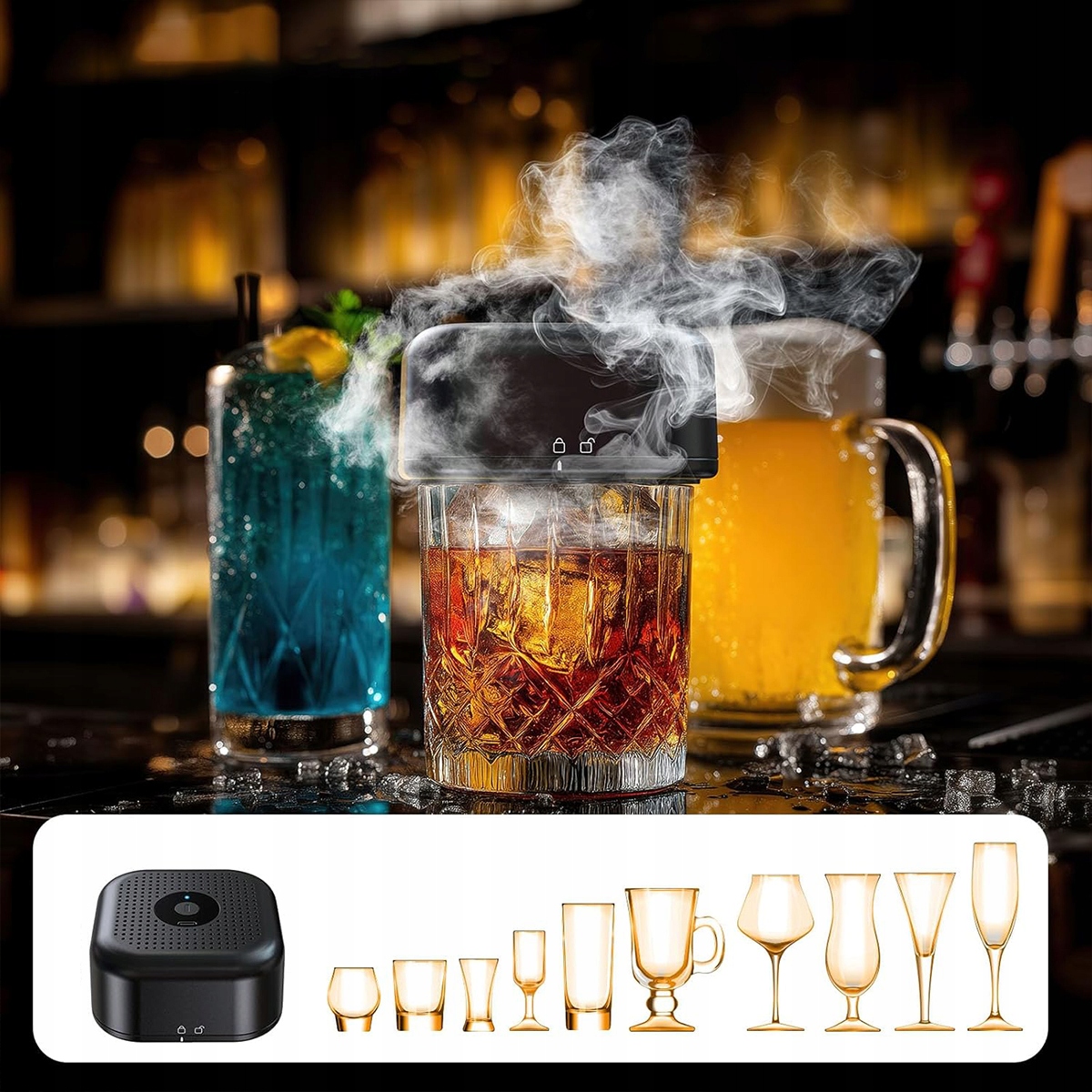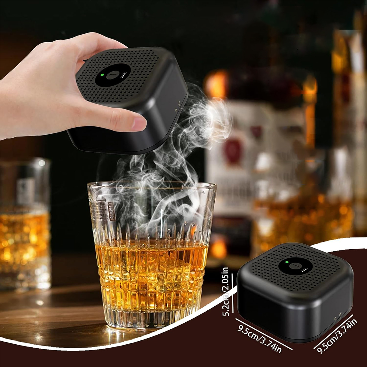 Це не тільки портативний, але й універсальний. Його можна брати з собою на сімейне свято, пікнік на природі і навіть в бар. Він підходить не тільки для віскі, але й надає коктейлям димний присмак.