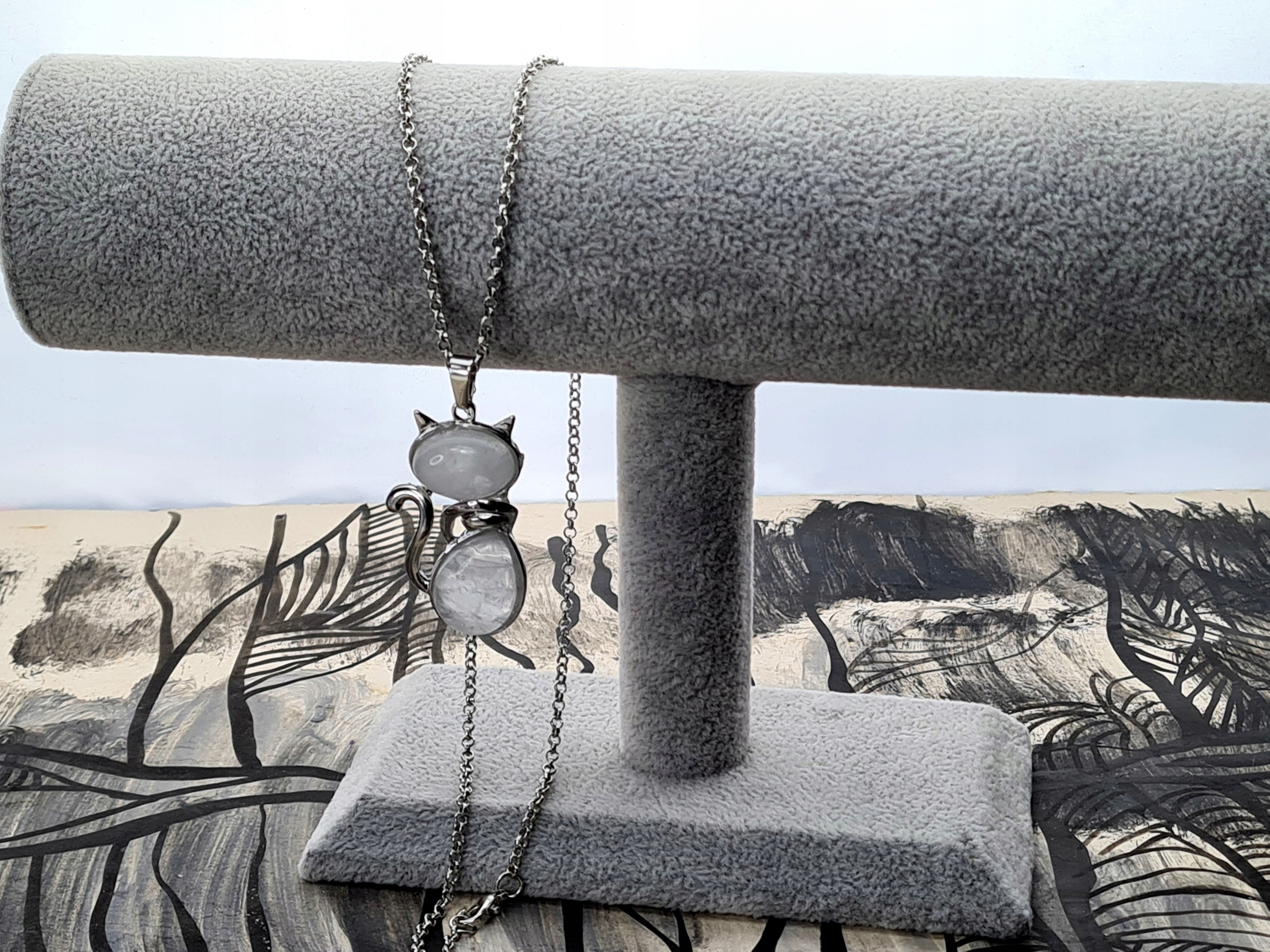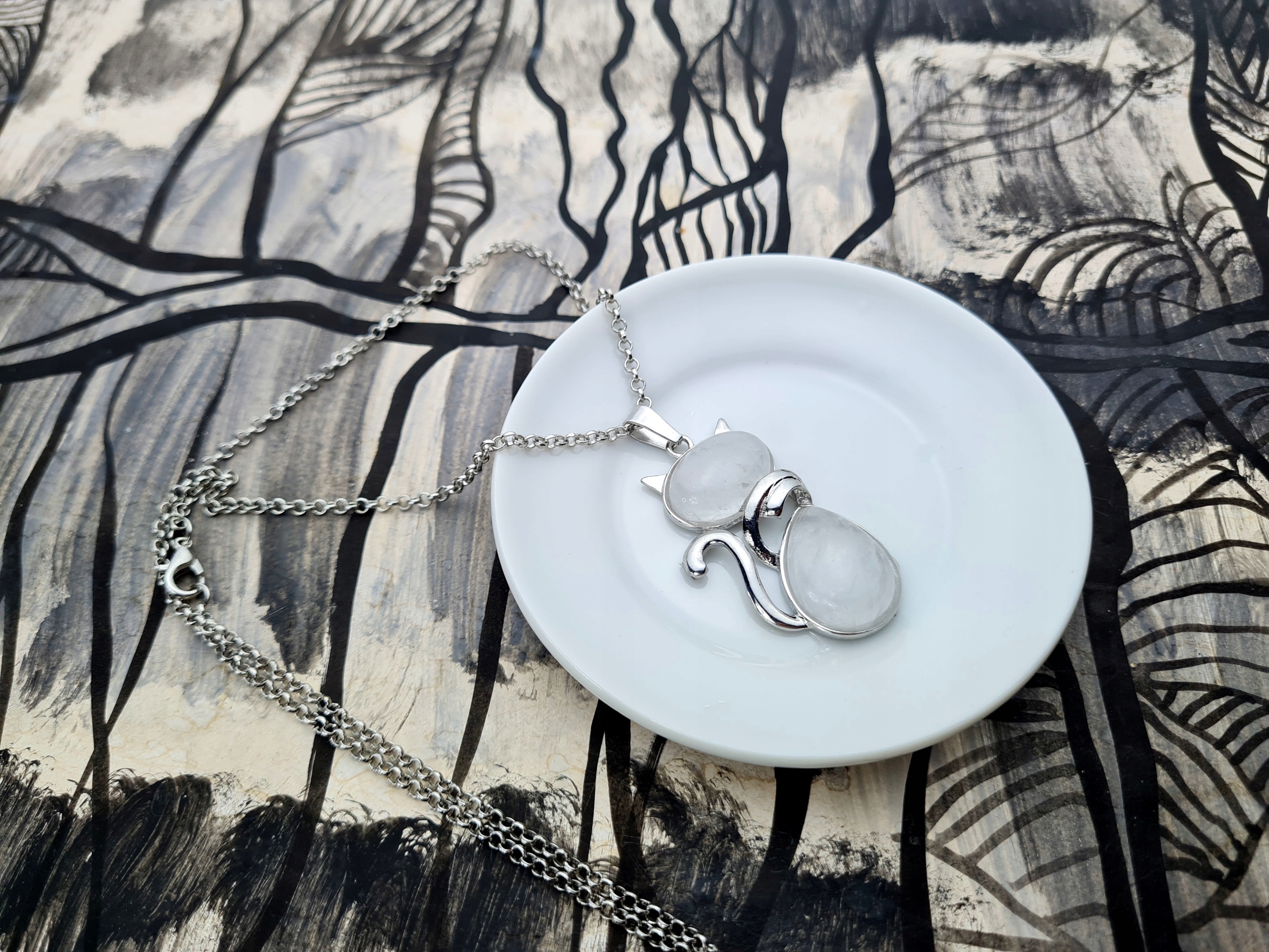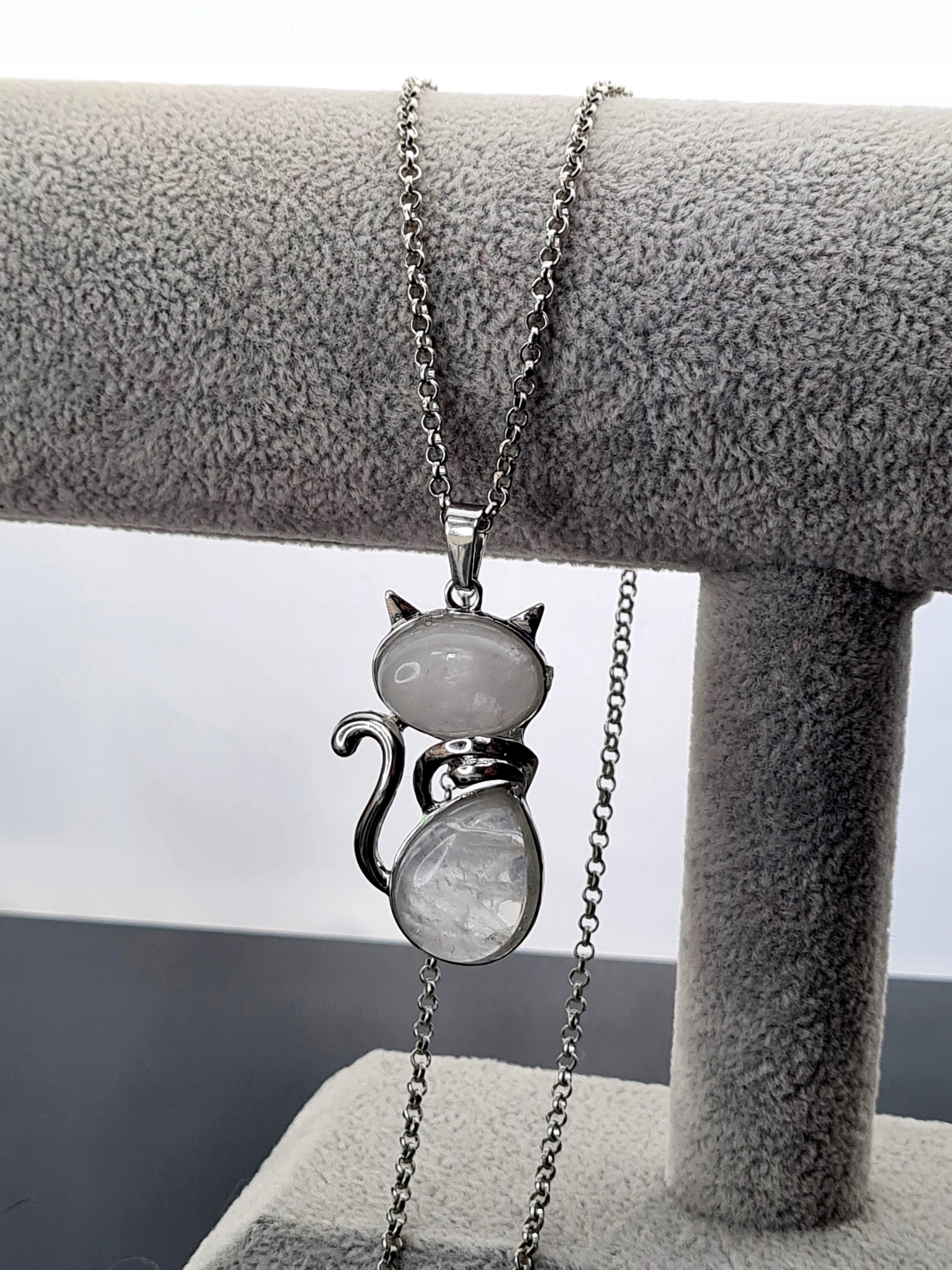 Кольє для дівчат з великим ланцюгом білого кришталевого кота для дівчат