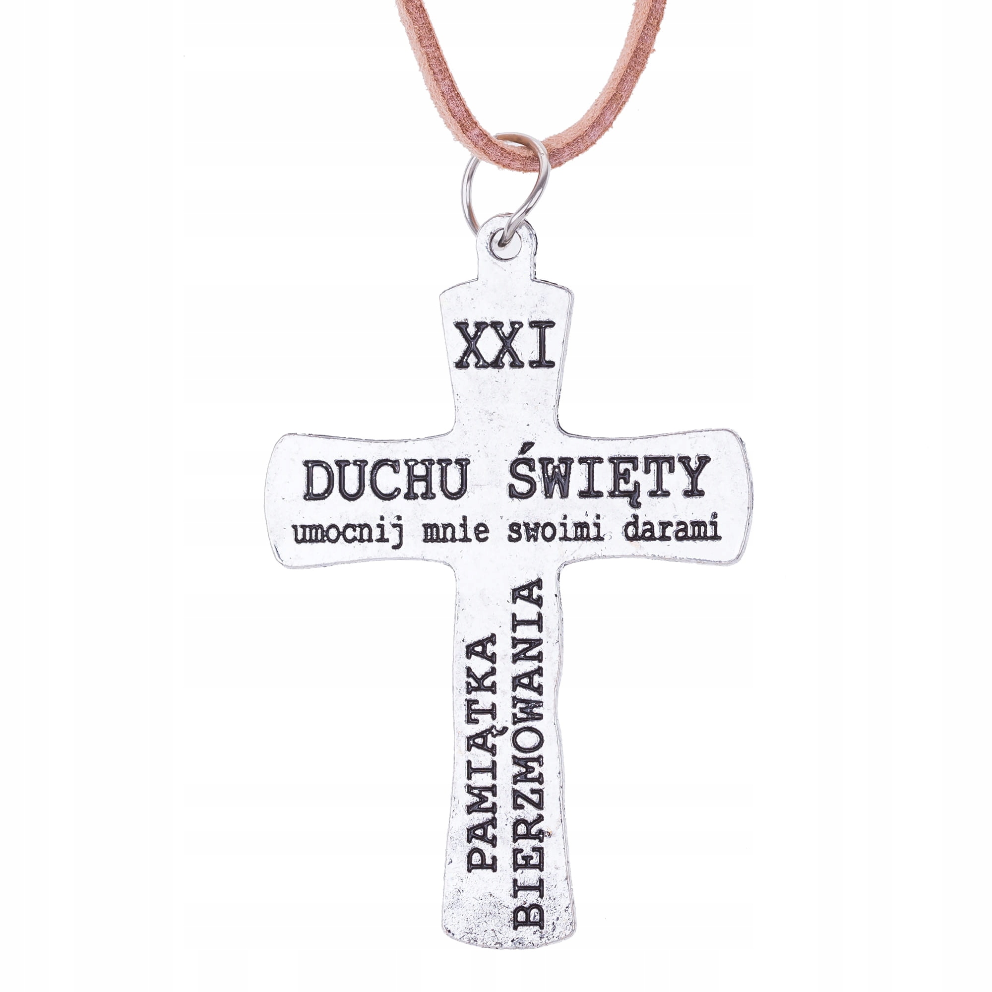 Зроблений з металу, підвішений на довгий ремінь, цей унікальний хрест відіграє роль не тільки прикрас, але, перш за все, духовного знаку та сувенірів таїнства підтвердження . З одного боку, є зображення розіп'ятого - з іншого, гравірування молитвою до Святого Духа: