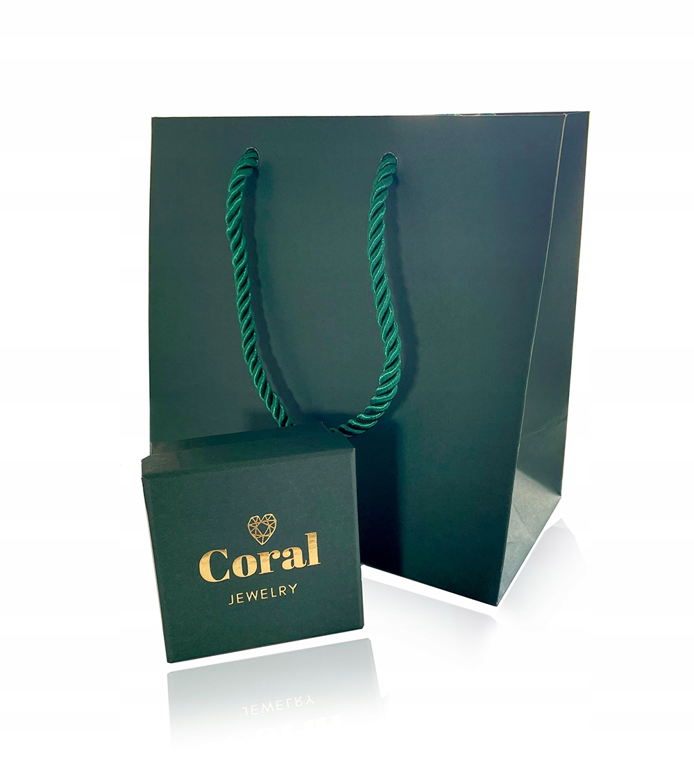 Тоді прикраси будуть автоматично упаковані в дуже елегантну коробку з логотипом бренду, ви також отримаєте елегантну сумку до набору. Декоративна упаковка та аксесуари, також з можливістю гравірування на дошці, включеній у набір.