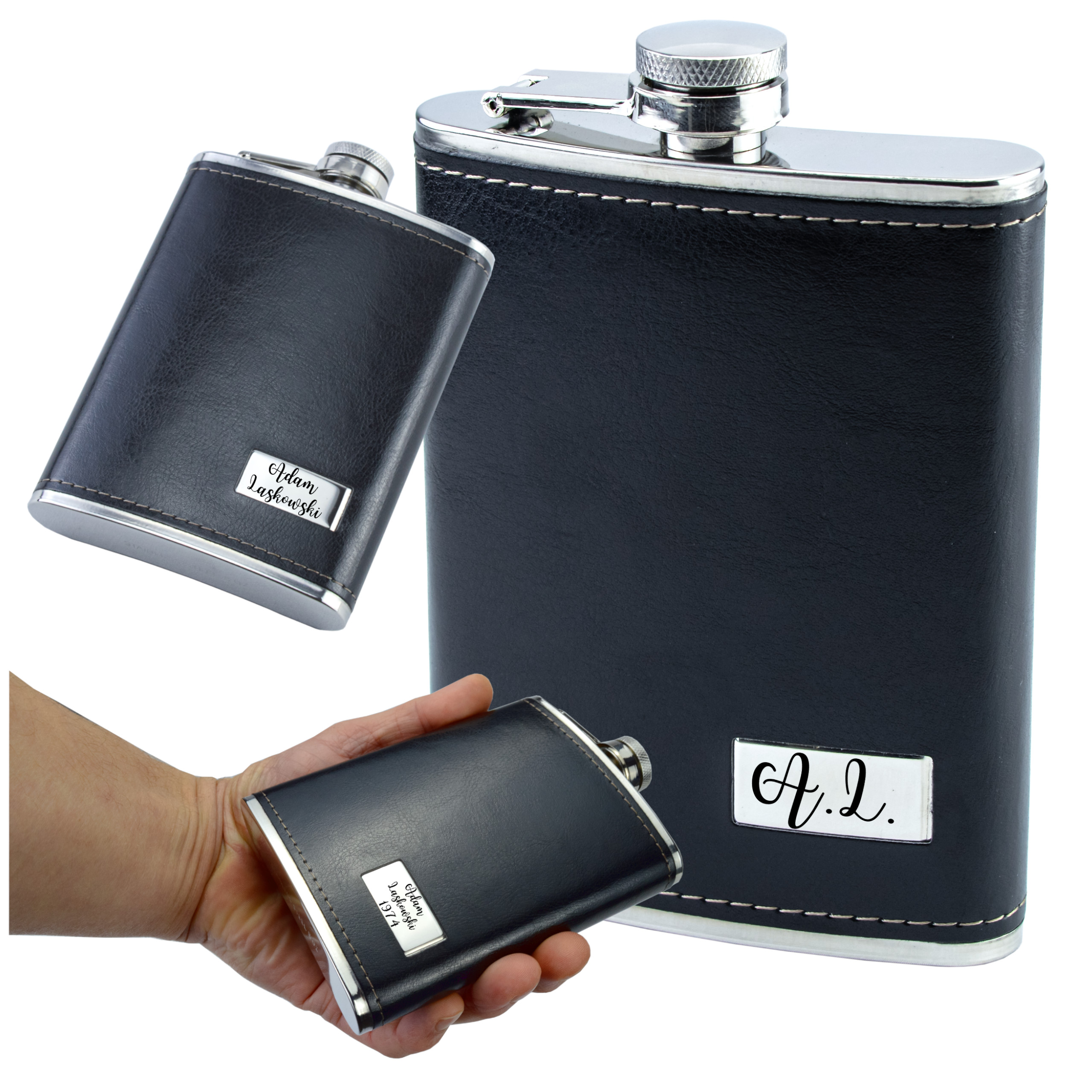 КОЛБА З НЕРЖАВІЮЧОЇ СТАЛІ ЗІ ШКІРЯНОЮ ОБРОБКОЮ + ГРАВІЮВАННЯ ІНІЦІАЛІВ