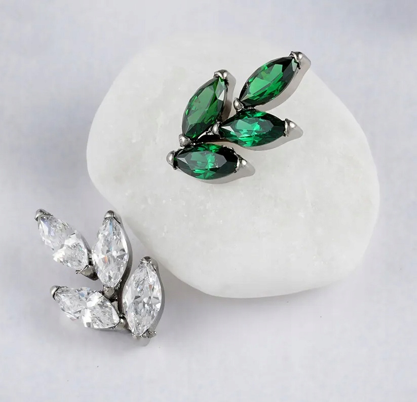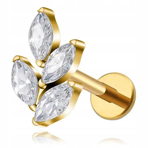 KOLCZYK DO UCHA LABRET ZŁOTY HELIX LIŚCIE TYTANOWY 1,2/6