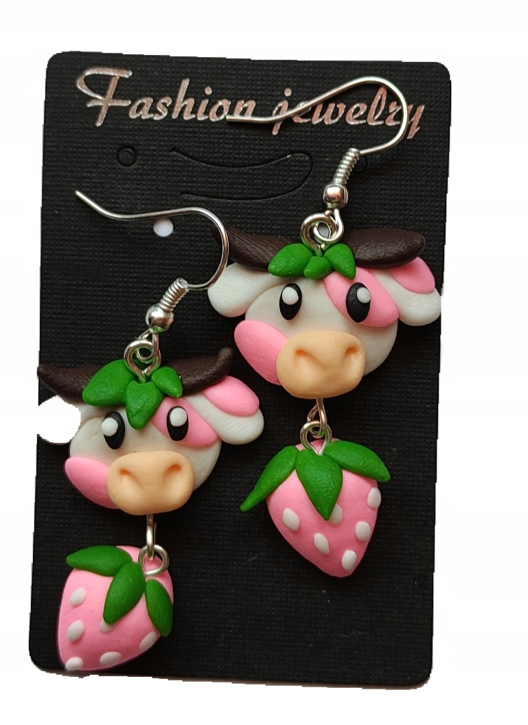 KOLCZYKI LONG Z MODELINY TRUSKAWKI KRÓWKI RÓŻOWE