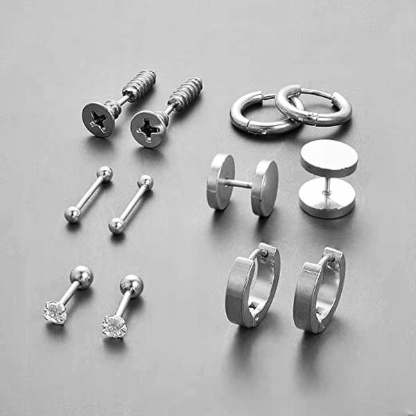 KOLCZYKI STAL ZESTAW 6 PAR SREBRNY (EB01)
