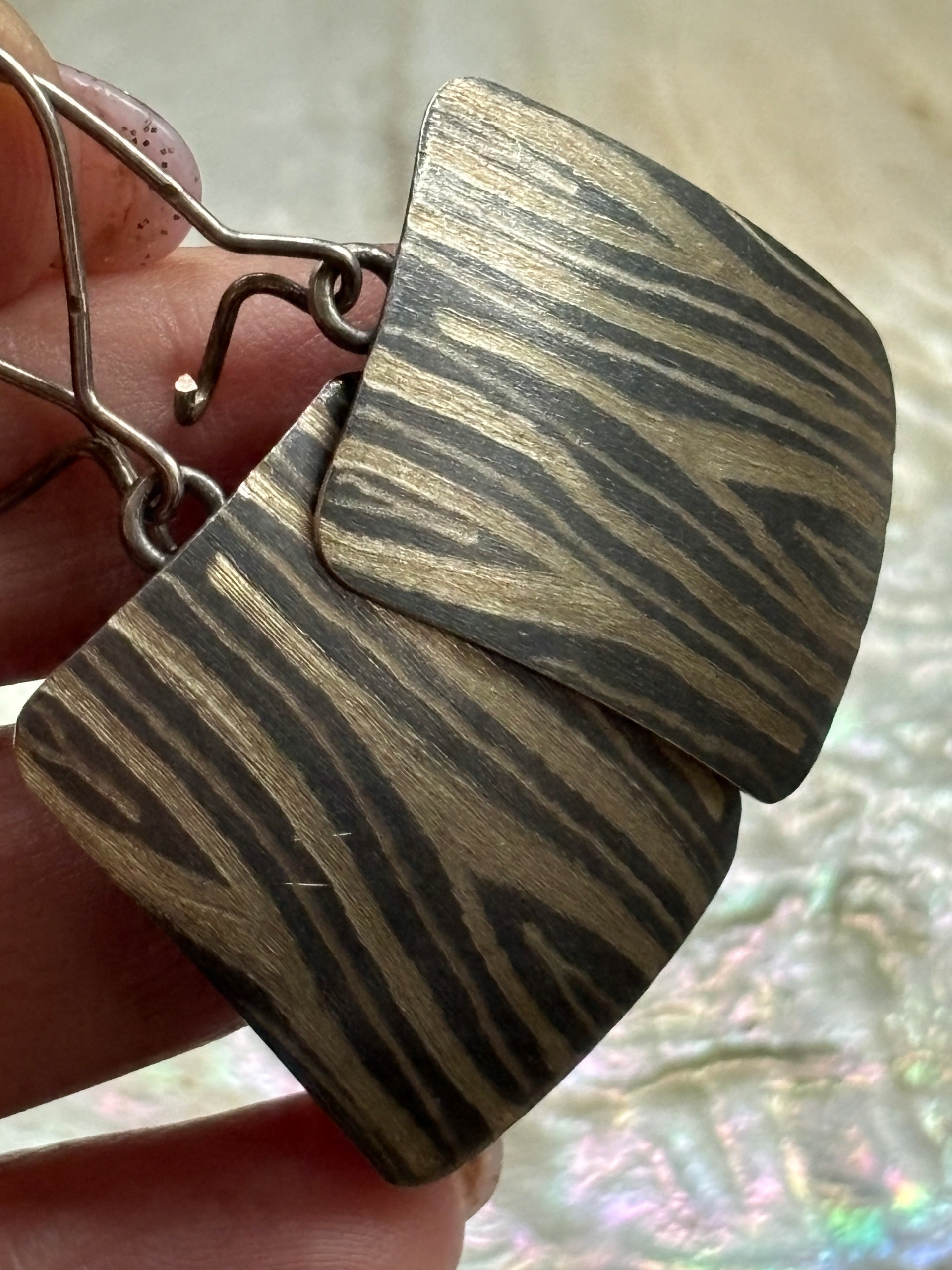 Kolczyki stare srebrne długie wiszące prostokąty paski zebra