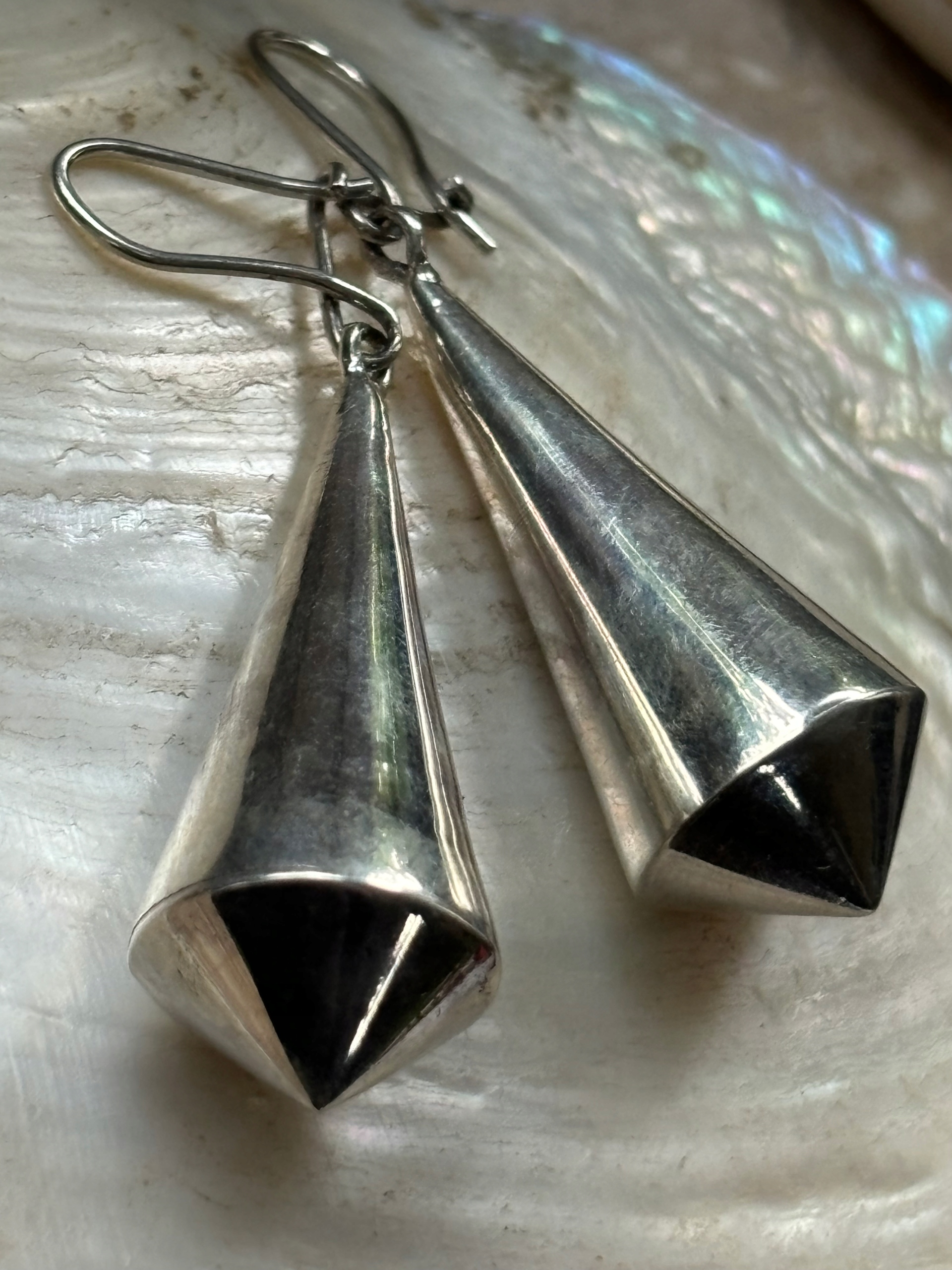 Kolczyki stare srebrne długie wiszące stożki